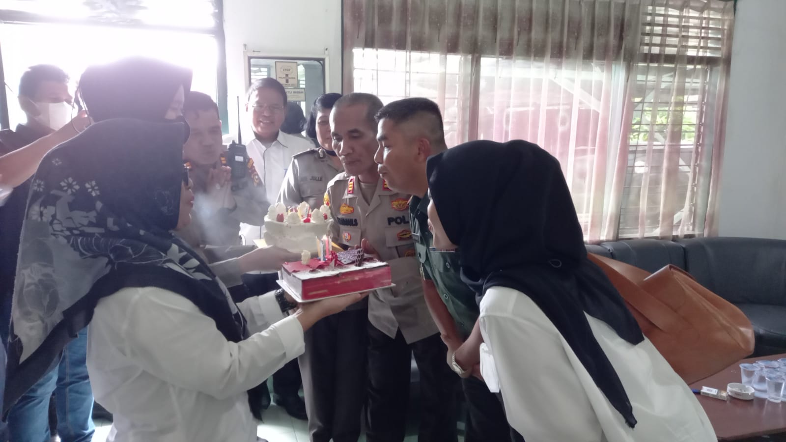 Polsek Sukajadi menyambangi Makoramil 06/Skj yang berada di Jalan Kusuma Kelurahan Jadirejo Kecamatan Sukajadi, Pekanbaru, Rabu (5/10/2022), siang. Kedatangannya dalam merayakan Hari Ulang Tahun (HUT) TNI ke.