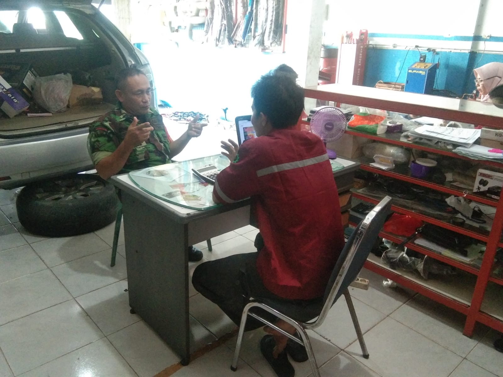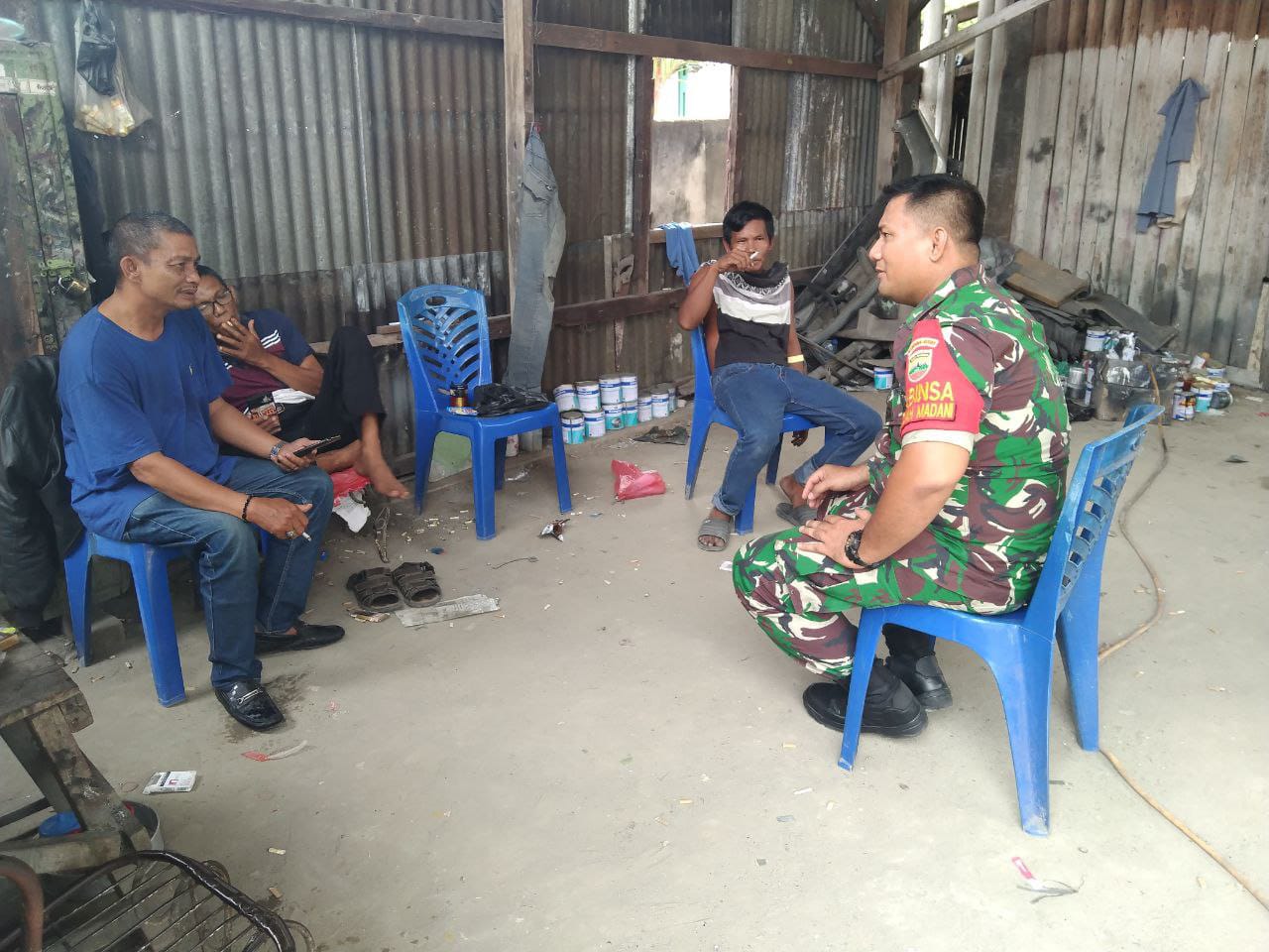 Dalam rangka mempererat tali silaturahmi dan membangun kerjasama yang baik dengan seluruh lapisan masyarakat di wilayah binaannya. Babinsa Koramil 06/Sukajadi Kodim 0301/PBR, Serda J.H. Pasaribu melaksanakan komsos dengan pekerja bengkel Kamal Jalan.
