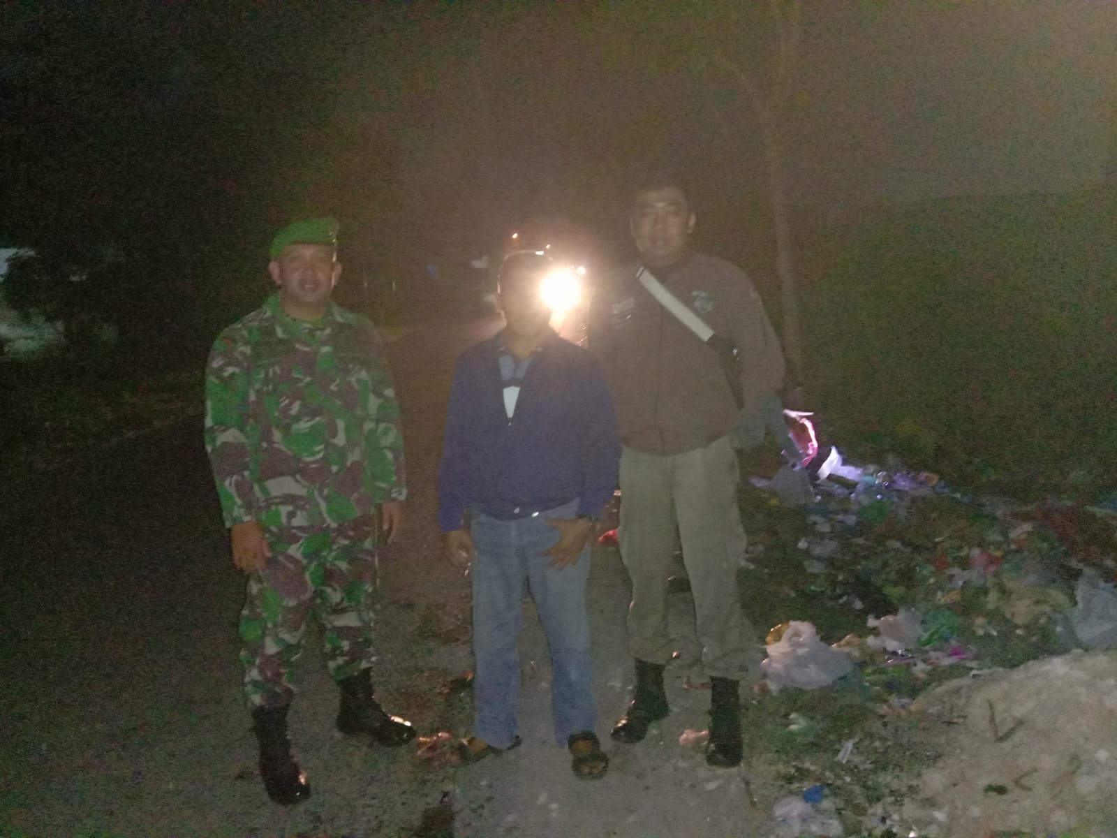 Sertu Wiyono Babinsa Koramil 06/Sukajadi Kodim 0301/PBR laksanakan kegiatan penertiban Tempat Pembuangan Sampah (TPS) Ilegal bersama Dinas Lingkungan Hidup dan Kebersihan Kota Pekanbaru, Kamis (22/9/2022) malam, pukul 23.00.