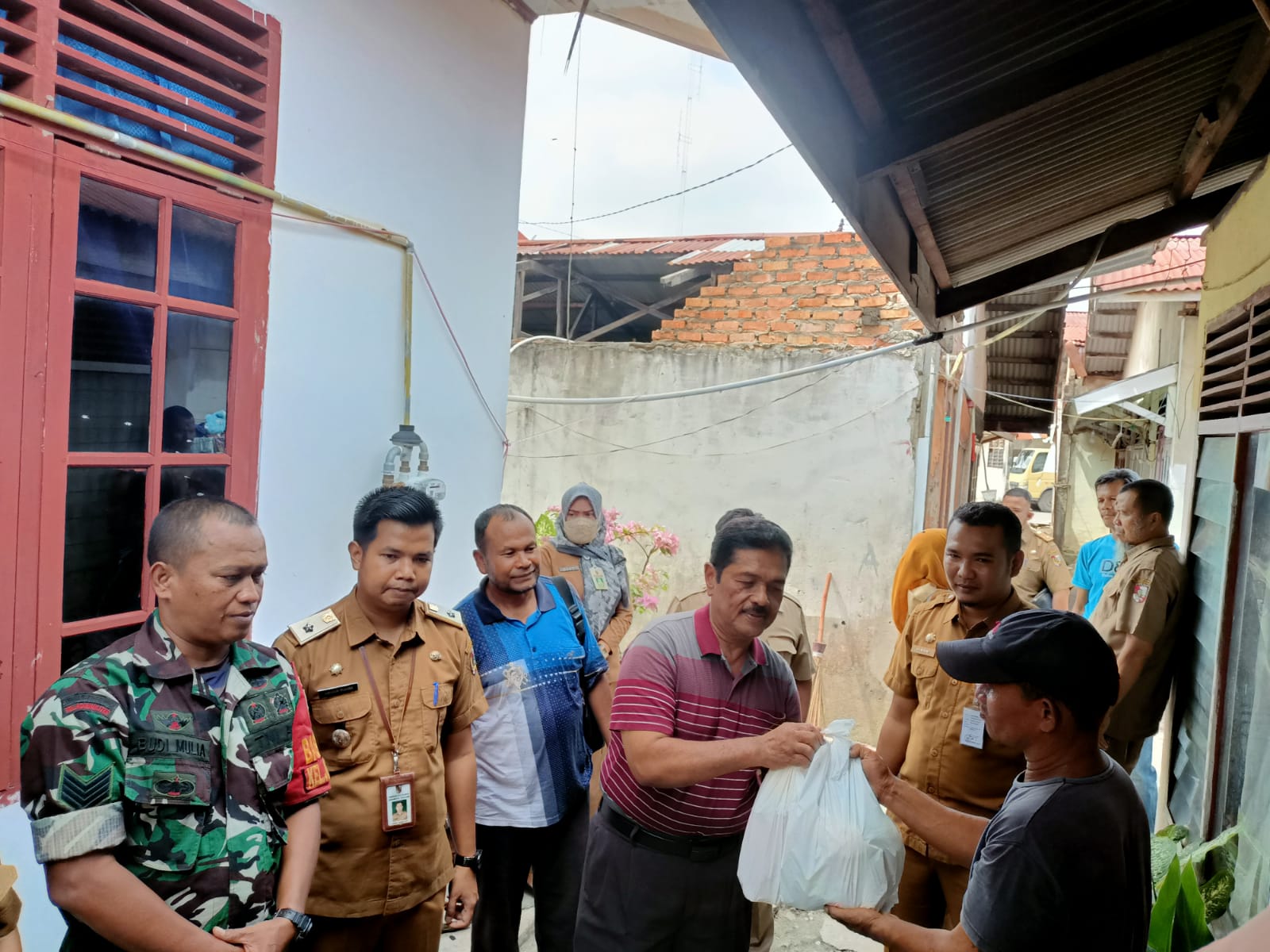Babinsa Koramil 06/Sukajadi Kodim 0301/PBR, Serma Budi Mulia laksanakan pendampingan menyerahkan bantuan makanan tambahan dari Pihak Puskesmas Langsat kepada Iham Mulia, anak yang beresiko stunting, Selasa.