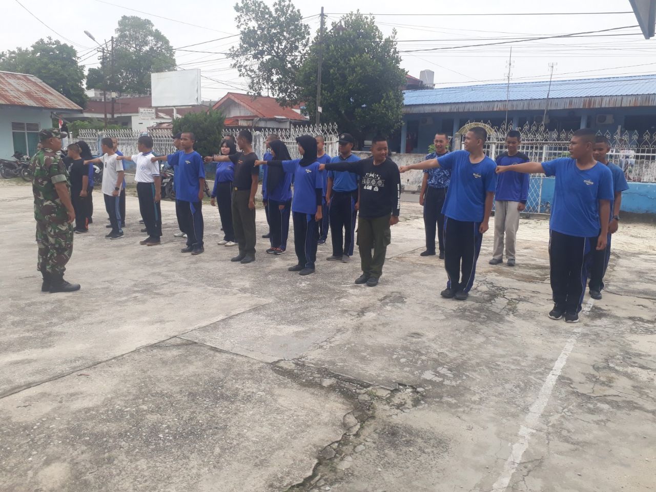 Babinsa Koramil 06/Sukajadi Kodim 0301/PBR, Sertu Usup memberikan wawasan kebangsaan (Wasbang) dan melatih PBB disekolah SMK Pelayaran di Jalan Kamboja RT 03 RW 02 Kelurahan Sukajadi Kecamatan Sukajadi, Sabtu.
