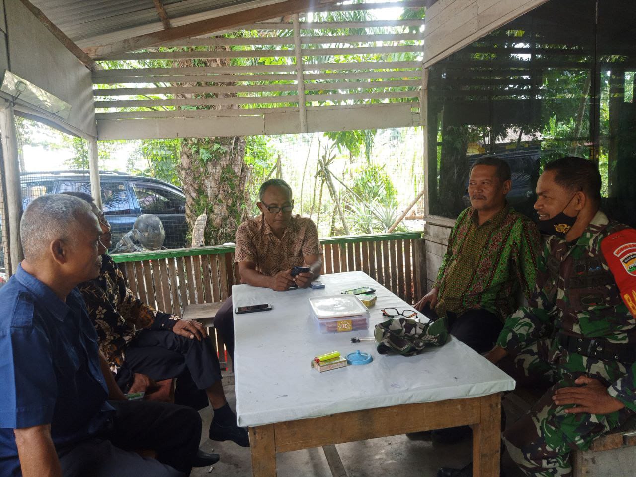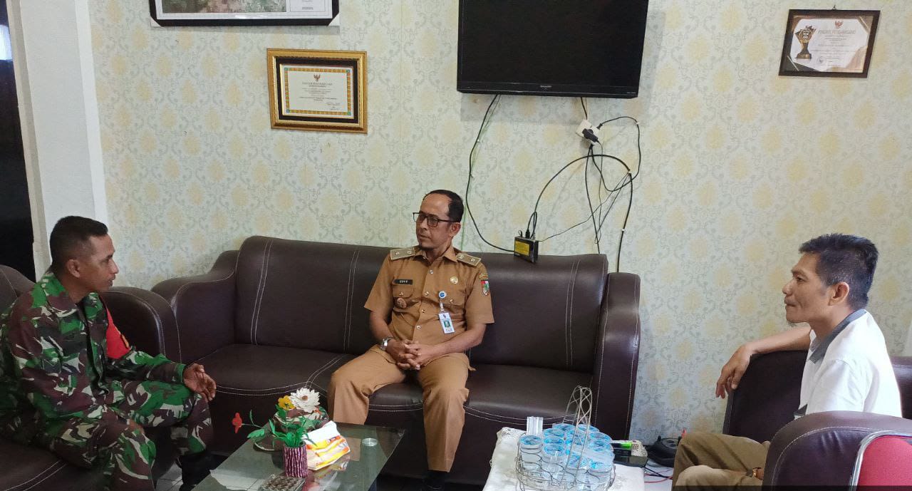 Babinsa Koramil 06/Sukajadi Kodim 0301/PBR, Serka Jarunin Tanjung melaksanakan komunikasi sosial dengan Lurah Edi Fakhri dan Ketua Forum RT RW Olbitor di kantor Jalan Purwodadi Kelurahan Sidomulyo Barat Kecamatan Tuah Madani, Pekanbaru, Rabu.