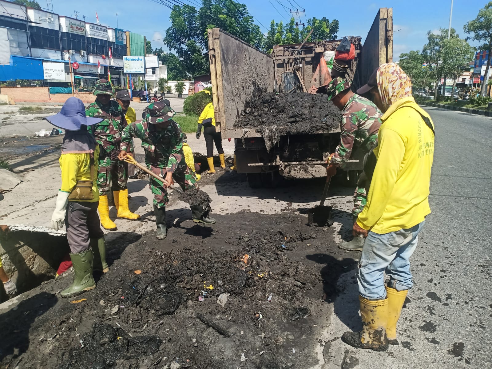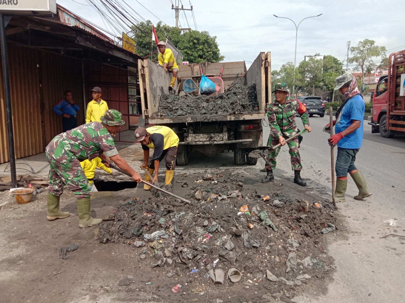 Sertu Parjo tergabung dalam Kodim 0301/PBR bersama petugas kebersihan Pemerintah Kota Pekanbaru setiap hari laksanakan gotong-royong normalisasi drainase, parit dan gorong gorong dalam rangka Pekanbaru bebas sampah dan banjir tahun.