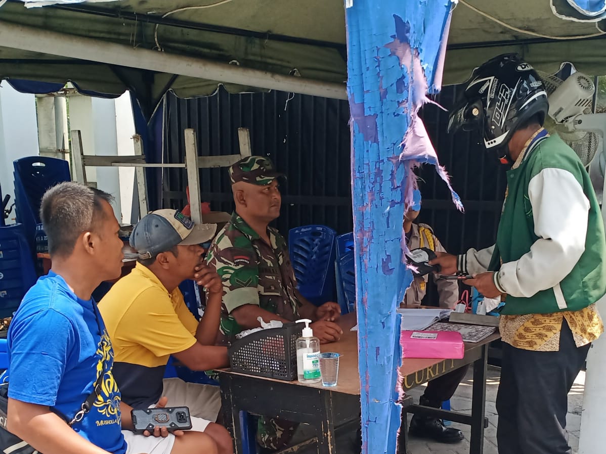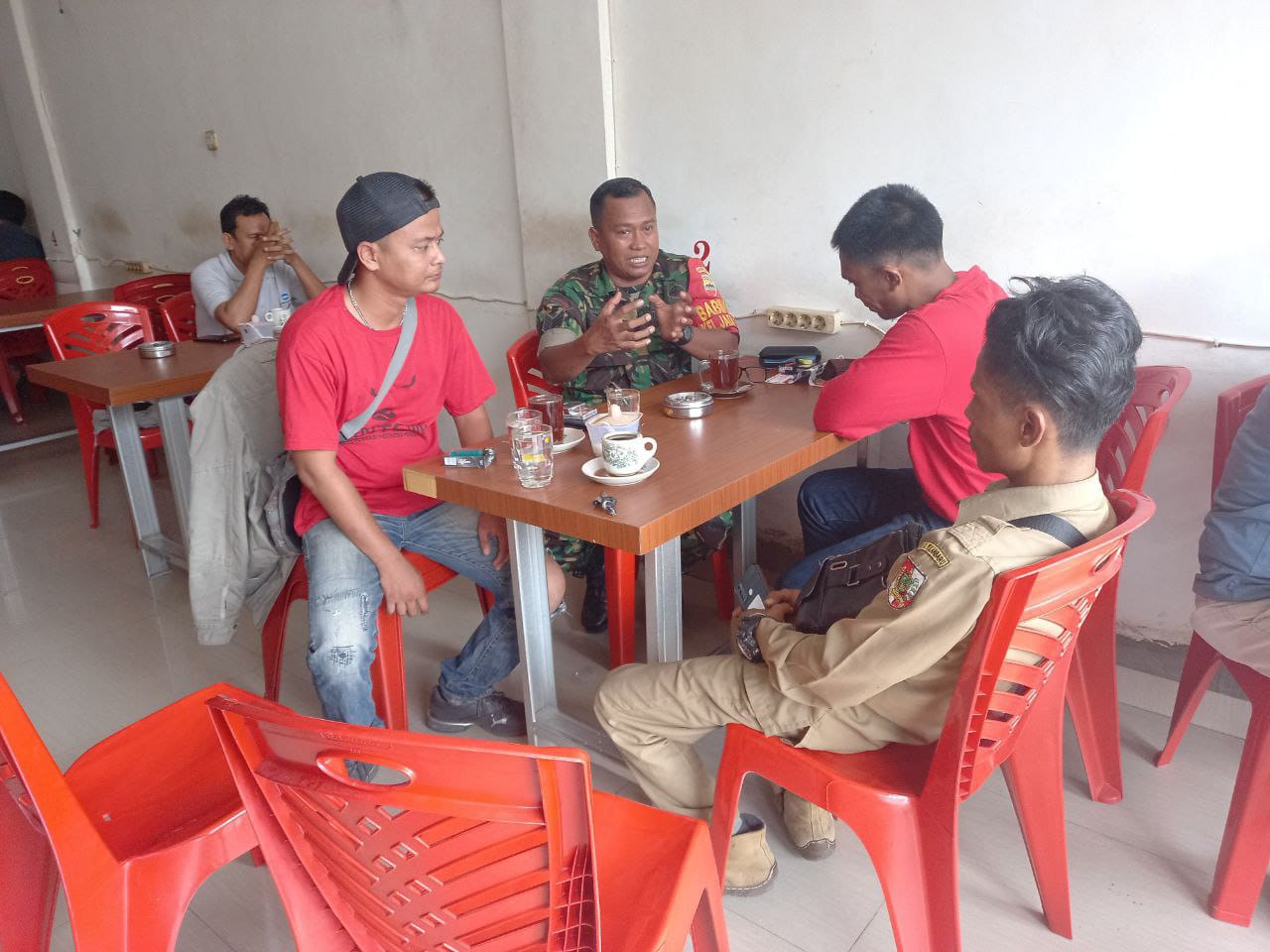 Babinsa Serma Budi Mulia melaksanakan komunikasi sosial dengan Tenaga Harian Lepas (THL) Dinas Lingkungan Hidup dan Kebersihan (DLHK) Kota Pekanbaru disalah satu kedai kopi Jalan Mangga RT 02 RW 02 Kelurahan Jadirejo Kecamatan Sukajadi, Kota.