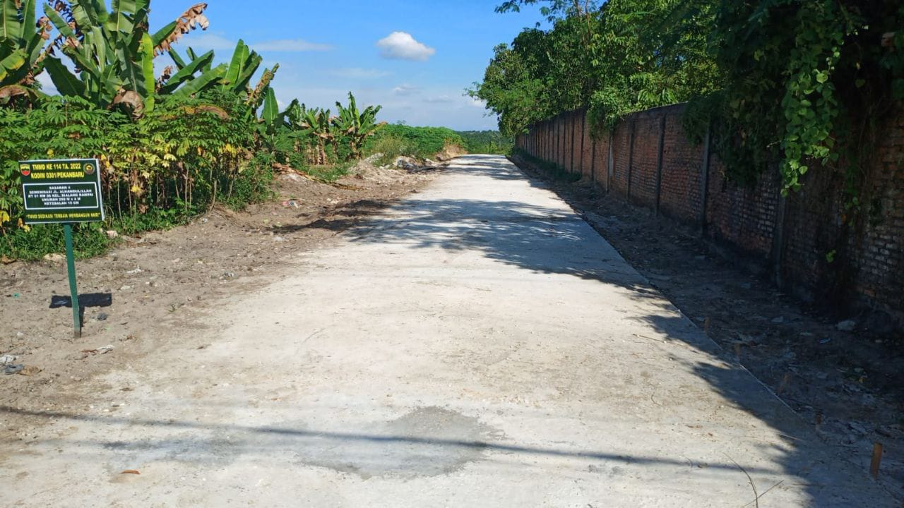 Pengecoran jalan Alhamdulillah Kelurahan Sialang Rampai Kecamatan Kulim Kota Pekanbaru yang di bangun melalui program TNI Manunggal Membangun Desa (TMMD) ke 114 Kodim 0301/PBR sudah selesai 100.