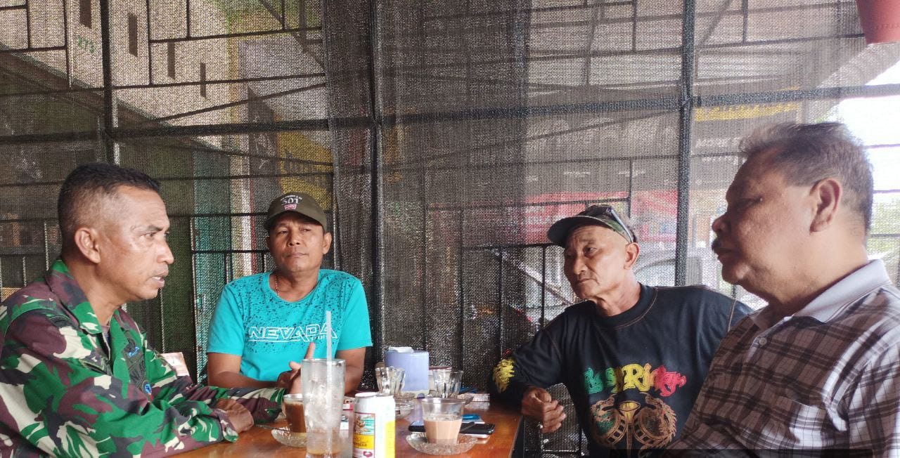Bintara Pembina Desa (Babinsa) Koramil 06/Sukajadi Kodim 0301/Pekanbaru, Serka J Tanjung melaksanakan komunikasi sosial dengan Ketua RW 08 Baharuddin dan pemilik cafe Jet Koffie Jon di Jalan Soekarno Hatta Kelurahan Sidomulyo Barat Kecamatan Tuah.