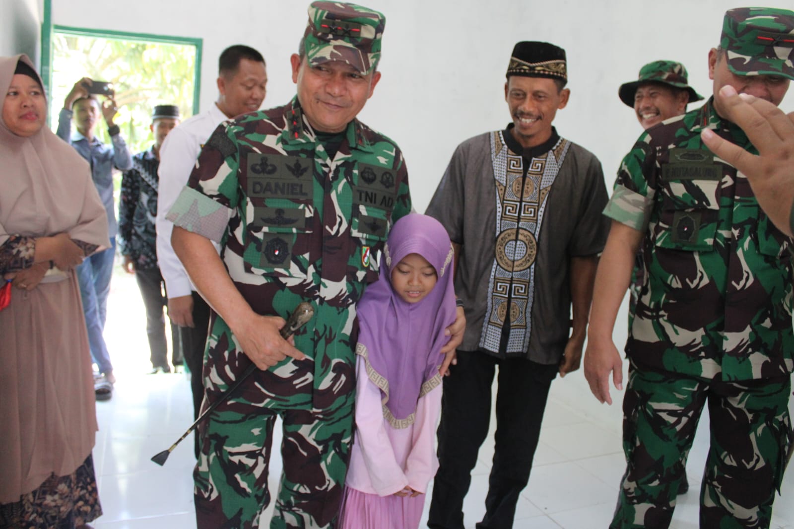 Panglima Komando Daerah Militer 1/Bukit Barisan (Pangdam I/BB), Mayjen TNI Achmad Daniel Chardin, menyerahkan kunci rumah kepada keluarga Prahara, yang termasuk sasaran program TMMD ke 144 Kodim 0301/Pekanbaru tahun anggaran 2022, Rabu, 24 Agustus.
