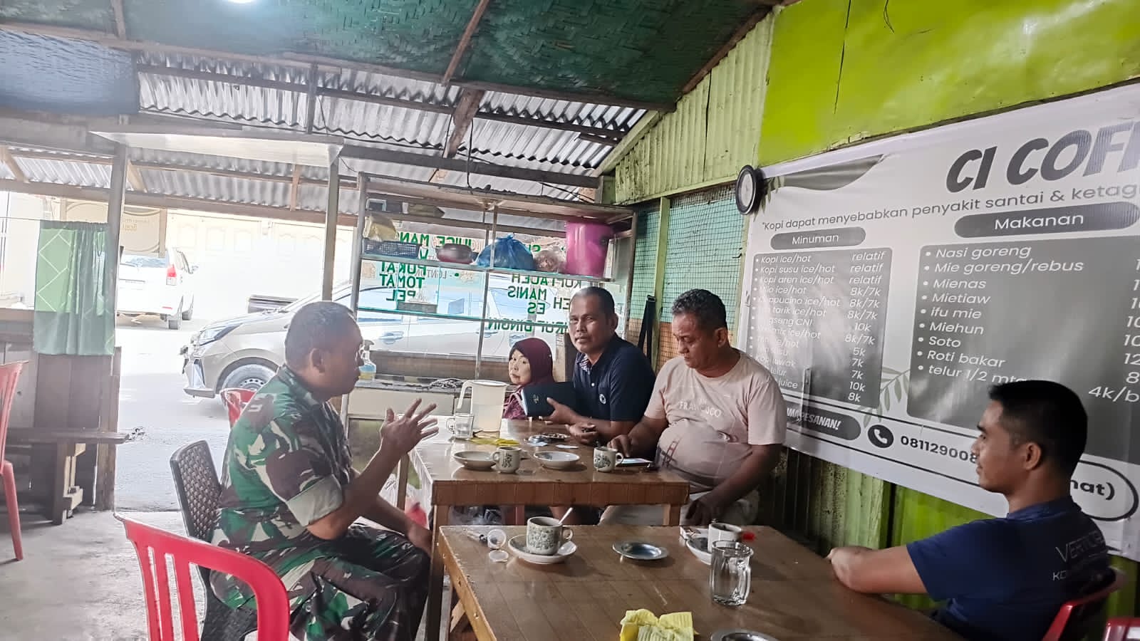 Ngopi Pagi, Sertu Jhoni Janan Mengajak Warga Pulau Karomah Perkuat Kamtibmas Lewat Komsos di Jalan Ahmad.