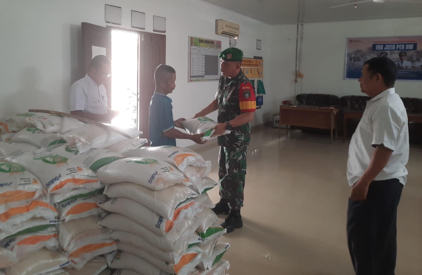 Babinsa Sertu Arman Monitor Penyaluran BLTS di Kantor Lurah Sialang.