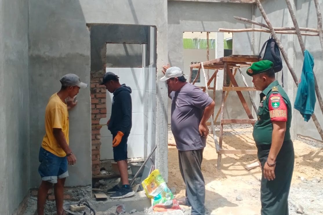 Pastikan Keselamatan Kerja, Babinsa Pelda Misbahudin Beri Arahan kepada Tukang di SMK Taruna.