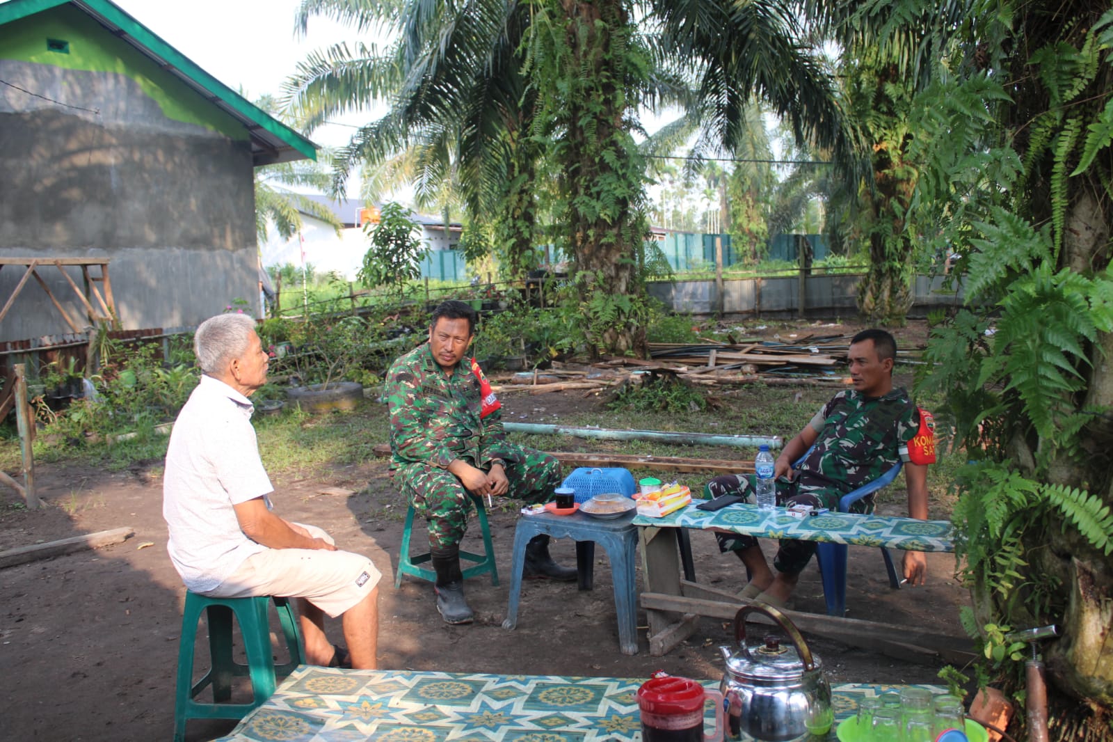 Memanfaatkan segala kesempatan untuk menjalin kedekatan antara Satgas TNI Manunggal Membangun Desa (TMMD) regular ke 114 Kodim 0301/PBR dan warga dengan saling bertukar pikiran pengalaman dan berbagi informasi, salah satu kegiatan untuk mengisi.