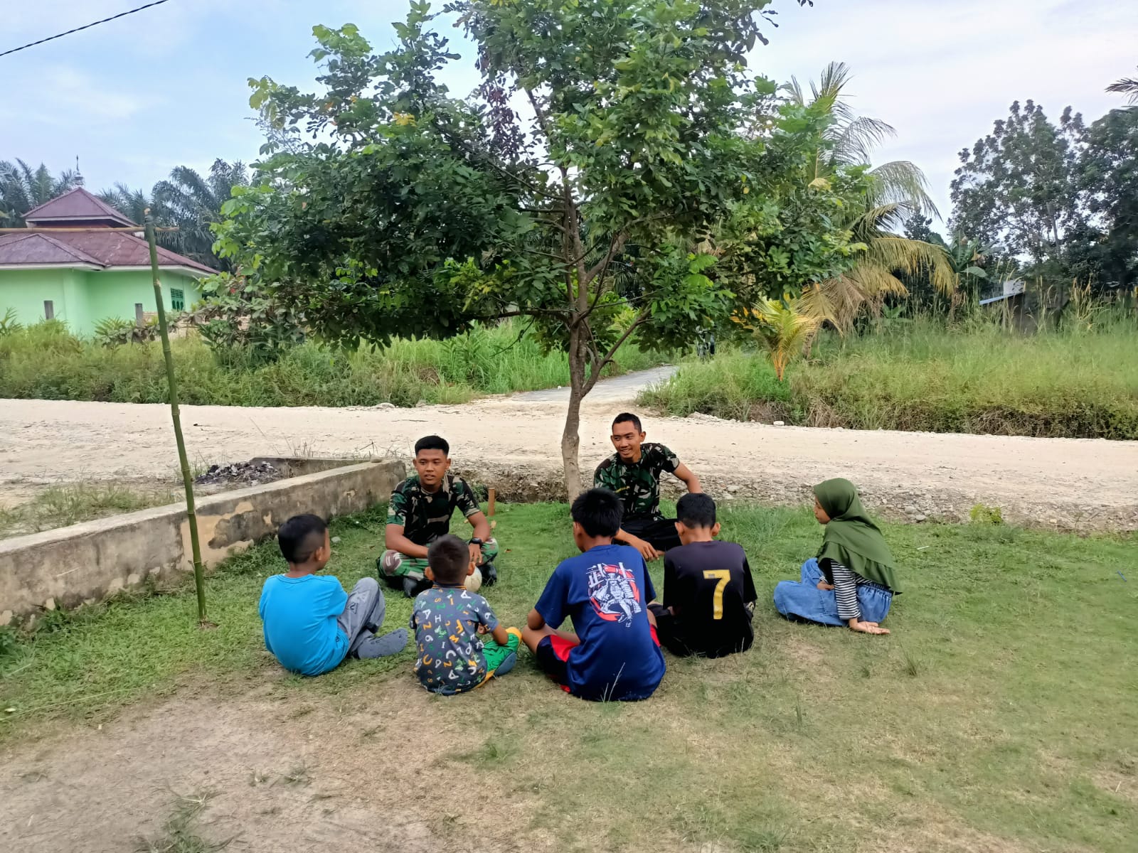 Anggota TNI terus membangun Komunikasi sosial bersama warga di lokasi kegiatan TNI Manunggal Membangun Desa (TMMD) reguler ke 114 Kodim 0301/PBR, Selasa (2/8/2022), pukul 20.10..