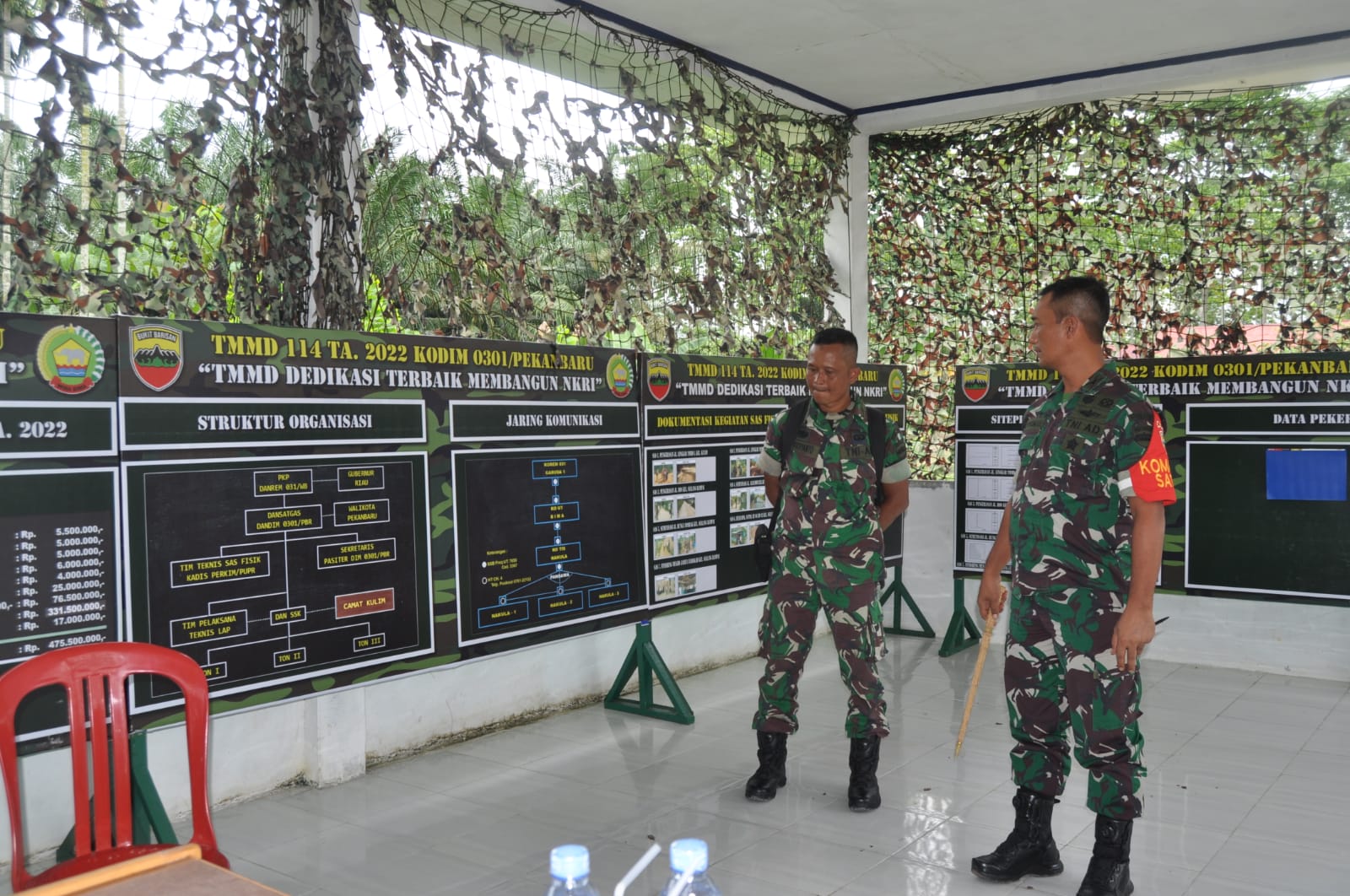 Komandan Kodim (Kodim) 0301/PBR, Kolonel Inf Nur Rohman Zein melaksanakan kunjungan kerja ke lokasi TMMD yang berada di Kelurahan Sialang Rampai Kecamatan Kulim, Pekanbaru, Rabu.