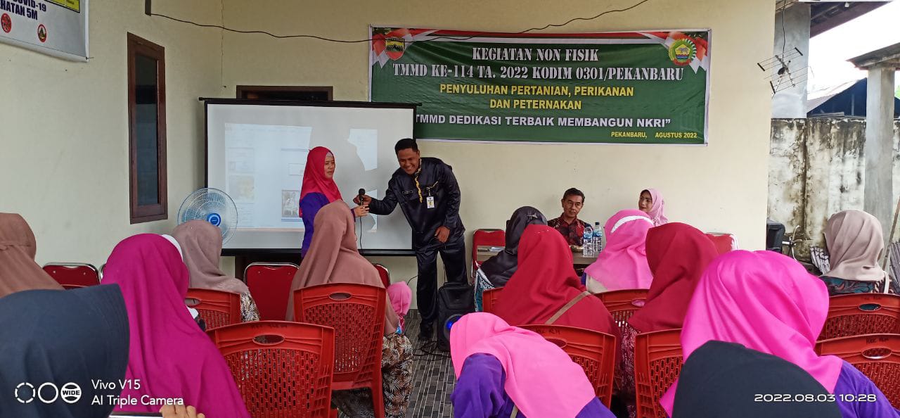 Selain gencar melaksanakan kegiatan fisik, personel Satgas TNI Manunggal Membangun Desa (TMMD) regular ke 114 Kodim 0301/PBR juga rutin dan berkesinambungan melakukan kegiatan non fisik, salah satunya berkolaborasi dengan Dinas Pertanian Provinsi.