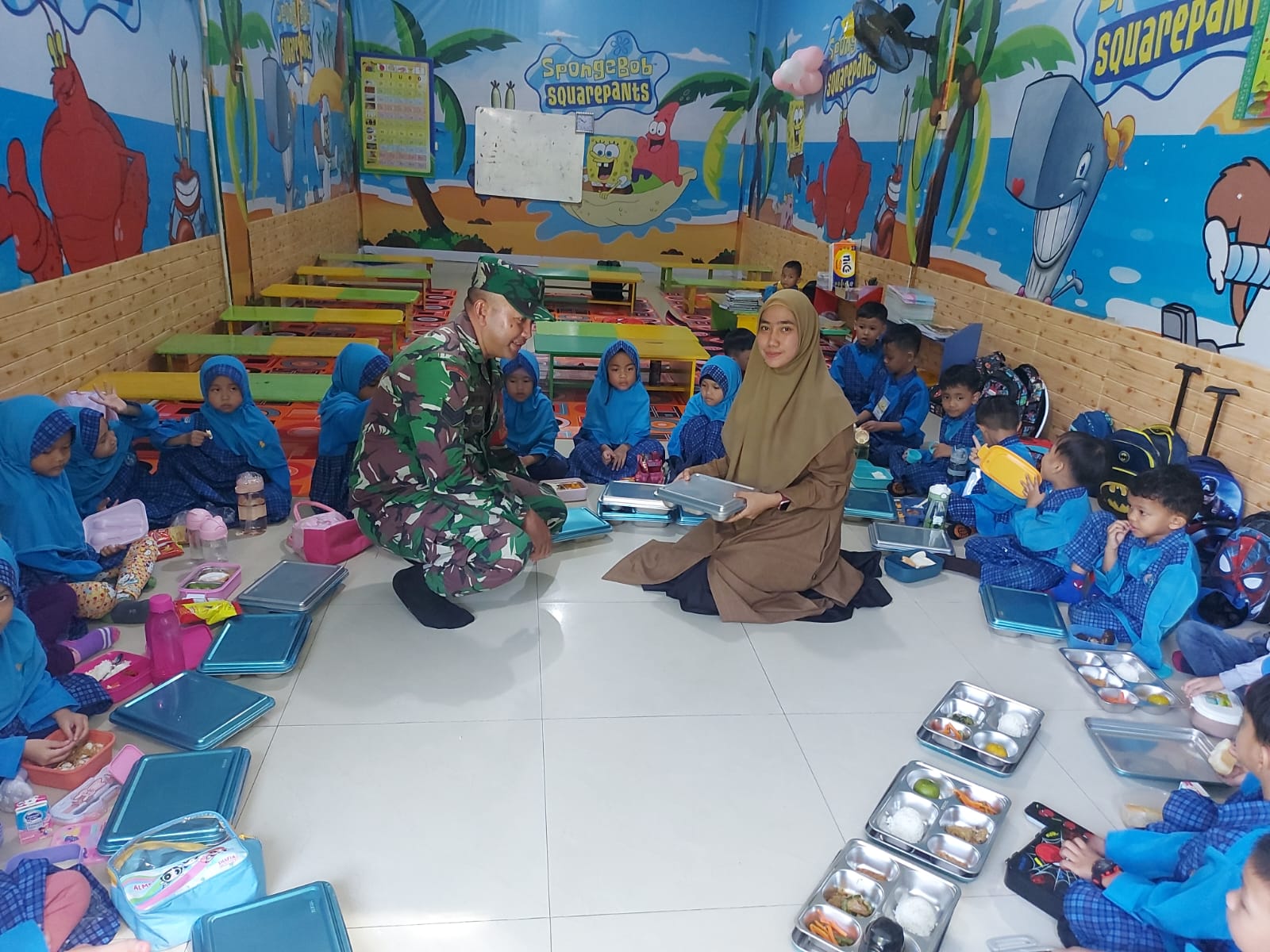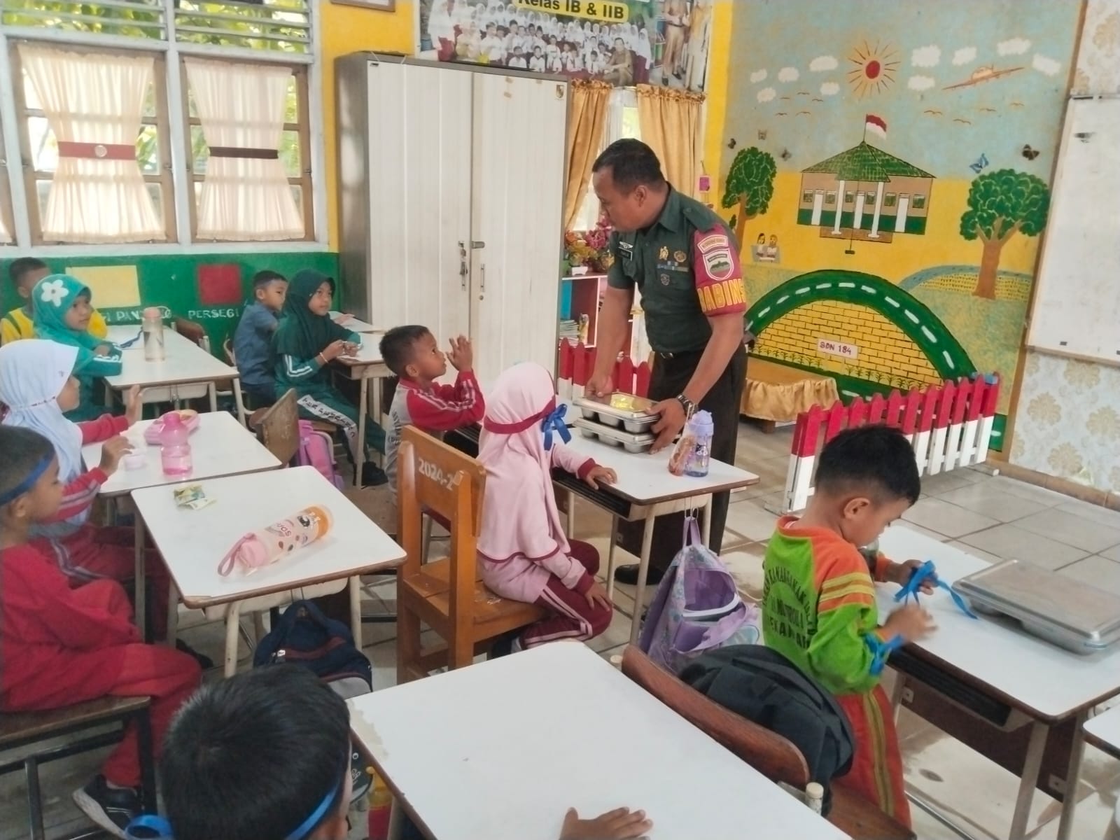 Babinsa Serka Wiyono Ajak Anak TK Anamiroh Hidup Sehat lewat Sarapan.