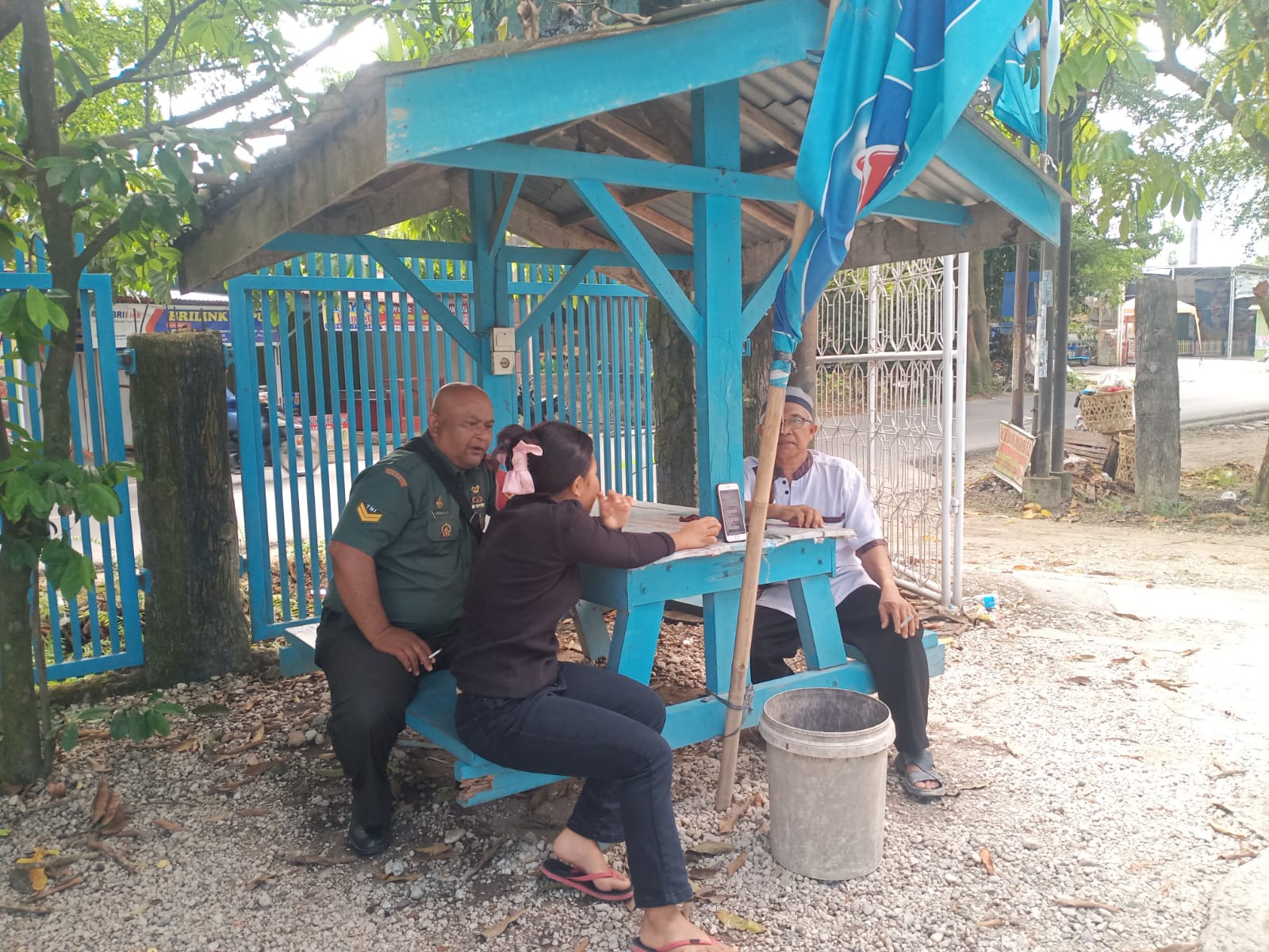 Babinsa Sertu Arman Komsos Bersama Warga di Bawah Pondok.