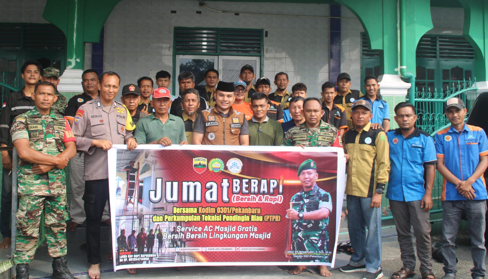 Sinergi Kodim 0301/Pekanbaru dan PTPR Bersihkan Masjid.