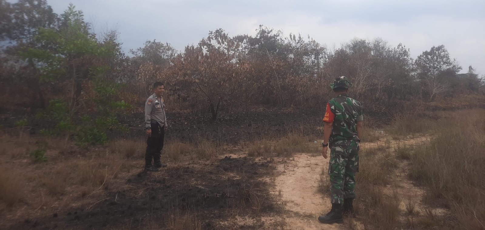 Babinsa Serka Toni Efendi dan Bhabinkamtibmas Sisir Lahan Terbakar, Cegah Karhutla di Wilayah.