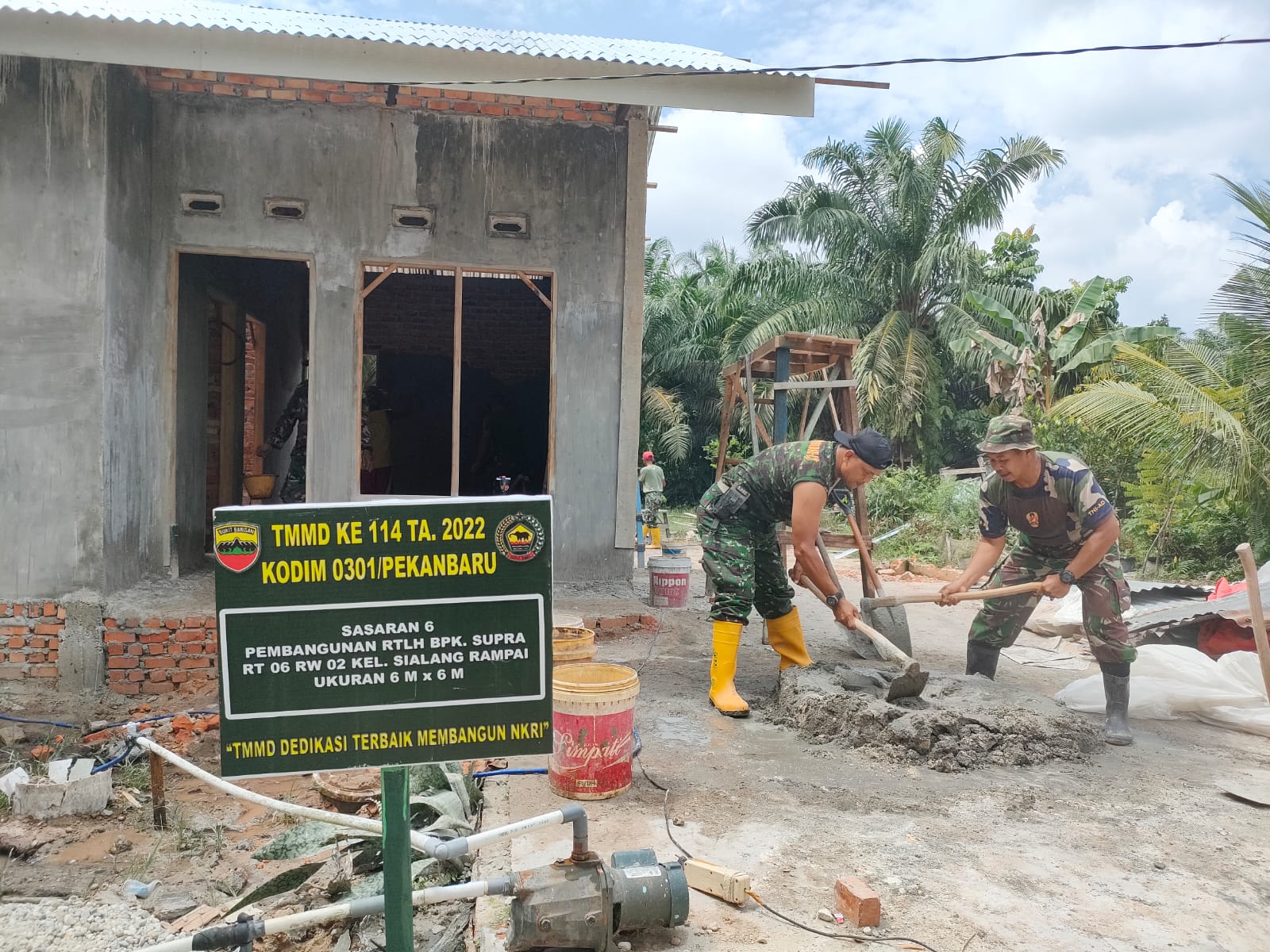 Program rehap Rumah Tidak Layak Huni (RTLH) bagi warga kurang mampu merupakan salah satu prioritas kegiatan fisik program TNI Manunggal Membangun Desa (TMMD) ke-114 Kodim 0301/PBR di Kelurahan Sialang Rampai, Keacamatan Kulim,.