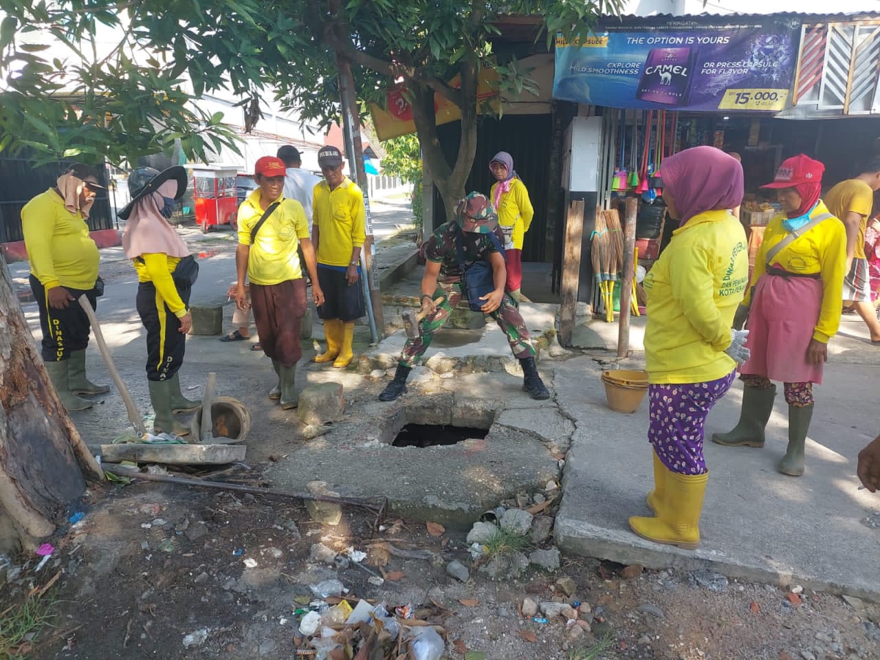 Guna mewujudkan Kota Pekanbaru bebas dari sampah dan banjir, Sertu Dedi Supriyadi, Babinsa Koramil 05/Sail Kodim 0301/PBR memantau kegiatan gotong royong bersama Forum Komunikasi pimpinan daerah (Forkopimda) Kota Pekanbaru di sasaran I Jalan Arifin.