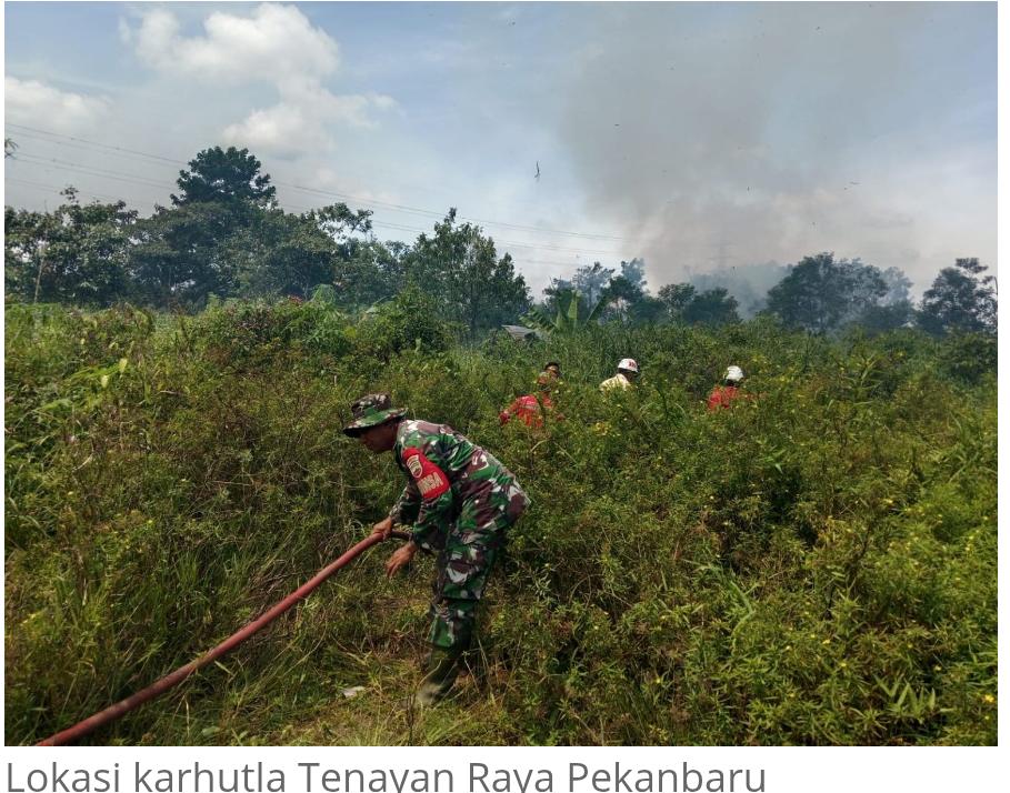 Babinsa Kodim 0301/Pekanbaru Bersama Tim Gabungan Padamkan Karhutla Seluas 4 Hektar di Tenayan.