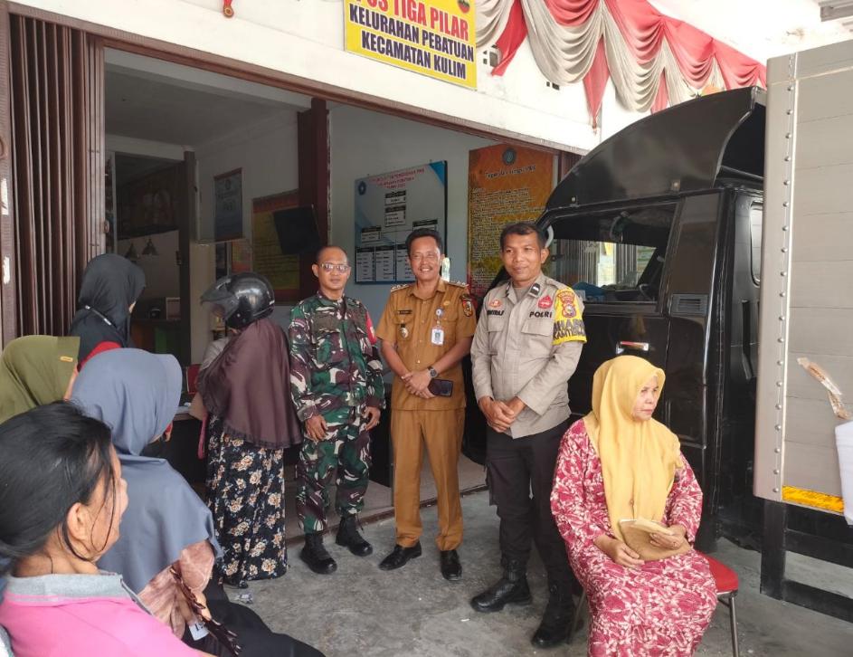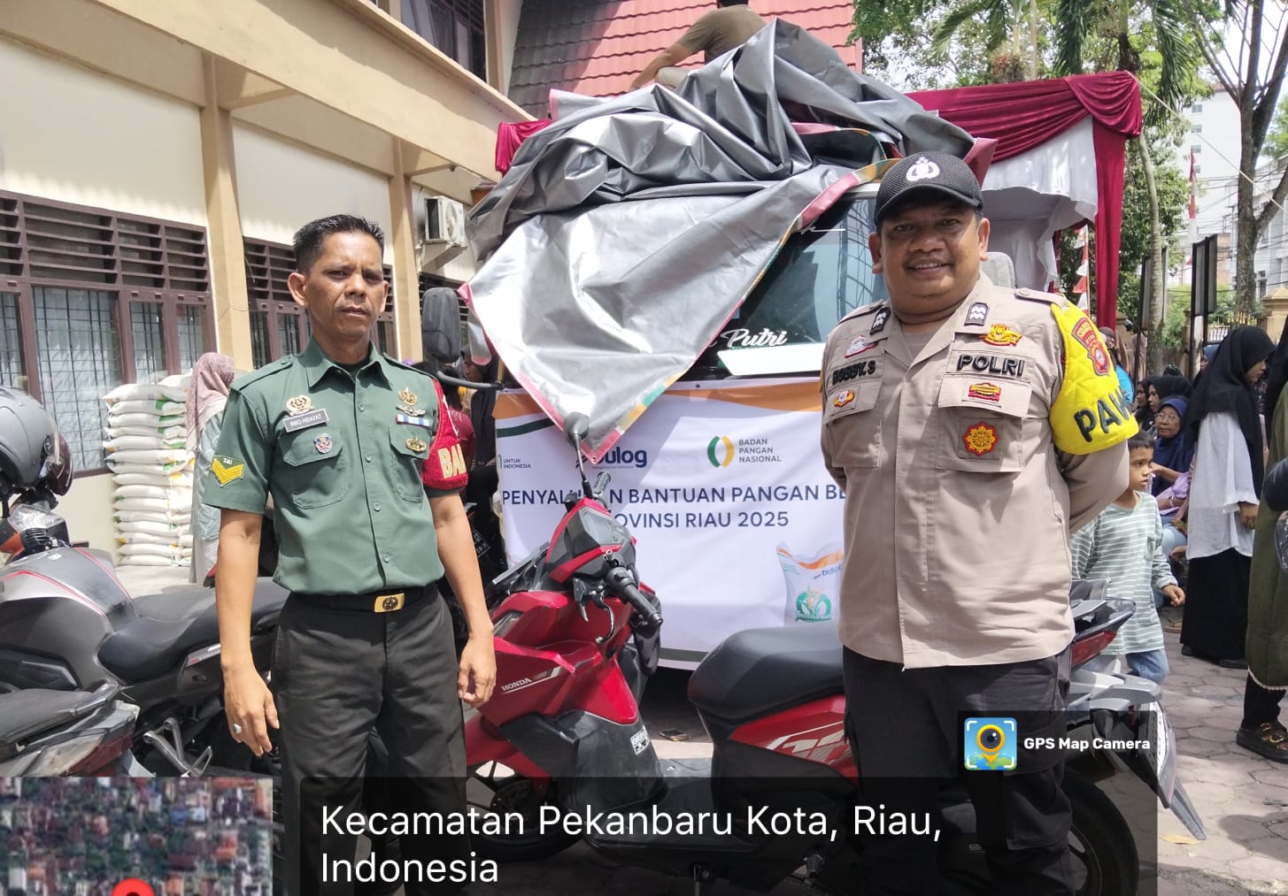 Babinsa Sertu Riko Dampingi Penyaluran Bantuan Pangan Provinsi Riau di Kecamatan Pekanbaru.