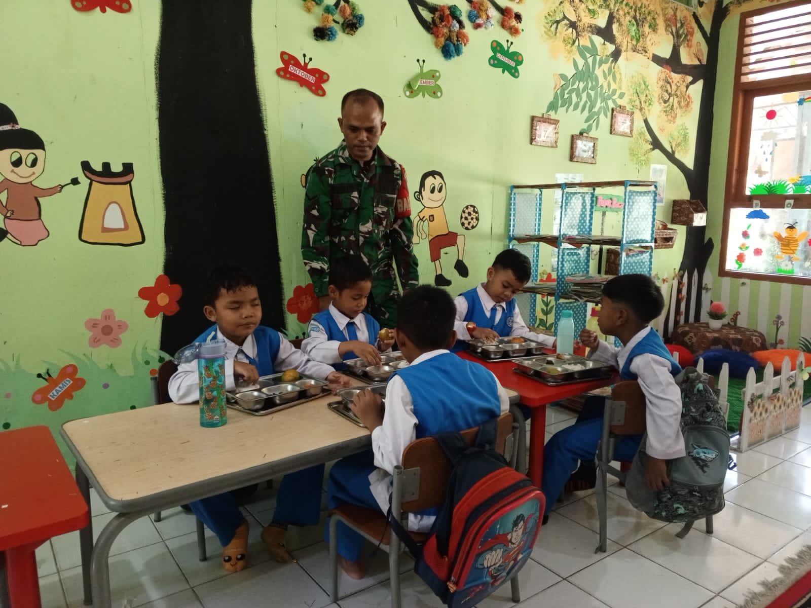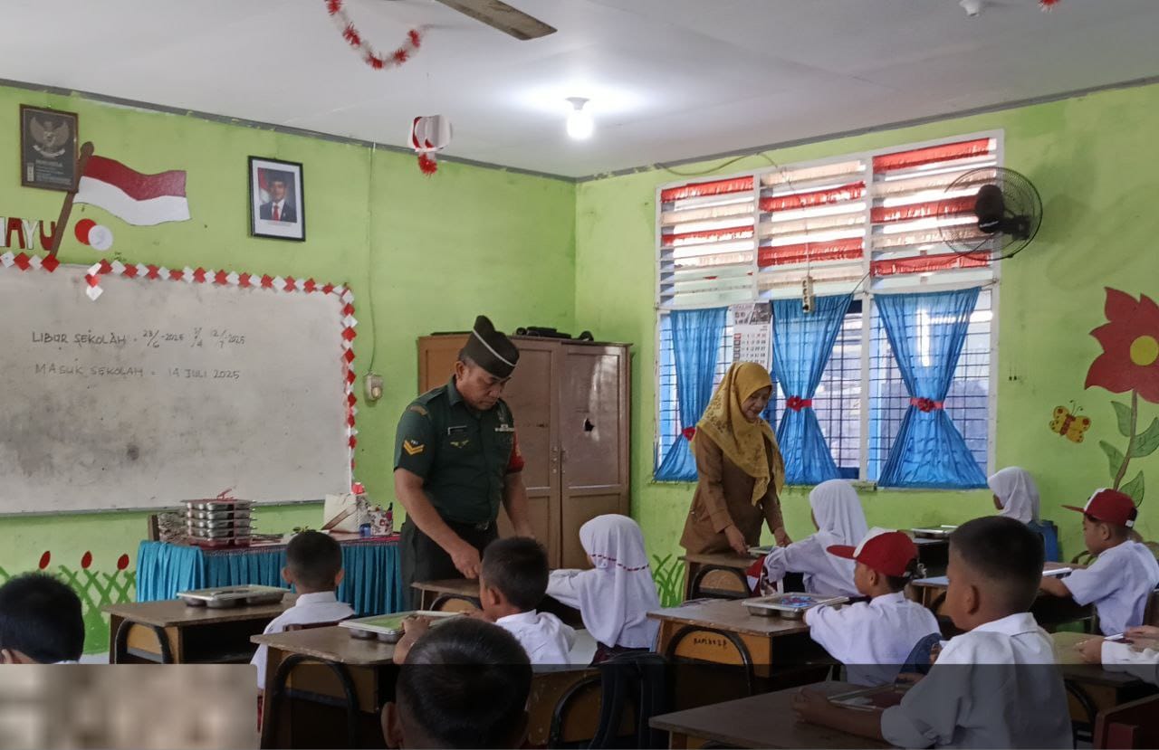 Babinsa Serka Toni Efendi Pantau Pembagian Makanan Bergizi di SD, Ciptakan Suasana Edukatif dan.