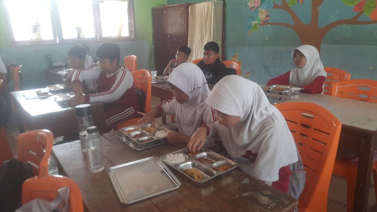Babinsa Serda Tulus Dampingi Pemberian 2.463 Porsi Makanan Bergizi untuk Siswa di Sidomulyo.
