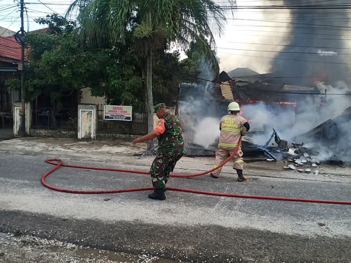 Sigap dan Aksi Nyata Babinsa Kodim 0301/Pbr Padamkan Api Lahap Tiga Rumah Petak Diduga Akibat Ledakan Tabung.