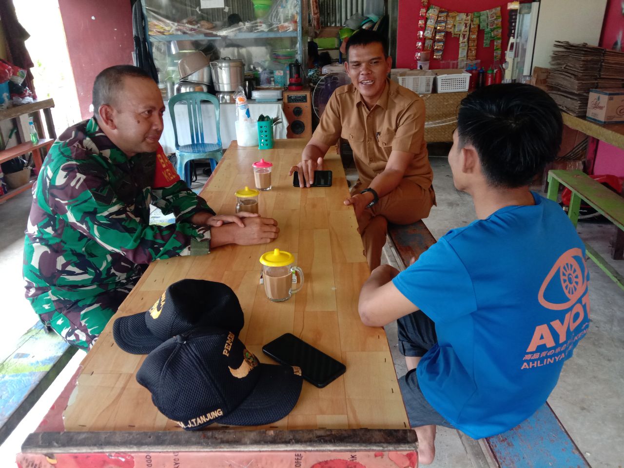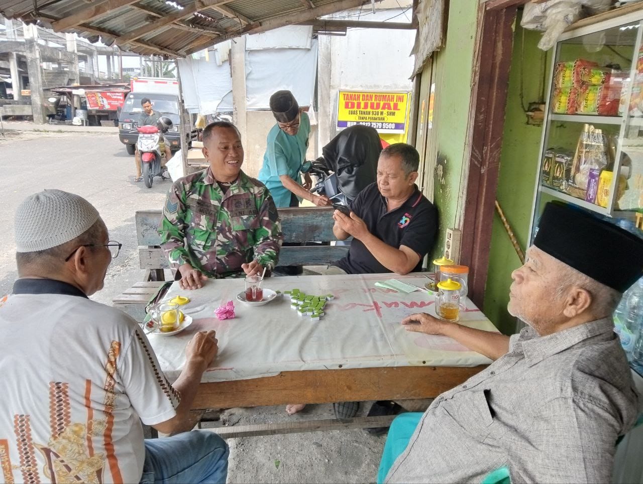 Babinsa Serma Budi Mulia Bangun Keakraban Lewat Obrolan Santai di Warung Kopi.