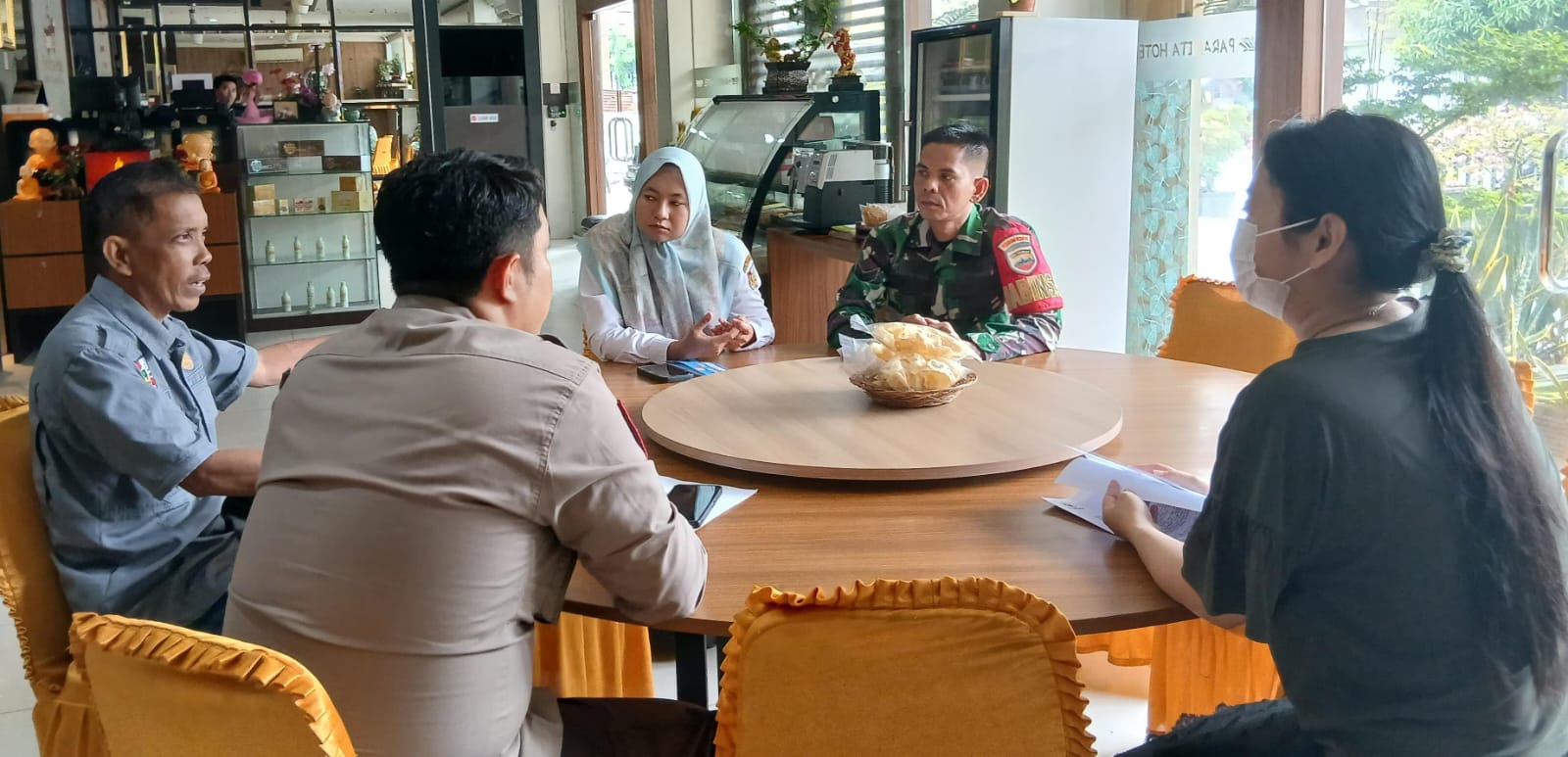 Babinsa Sertu Riko Hidayat Komsos dengan Pelaku Usaha Bahas Pembentukan LPS di Kota.