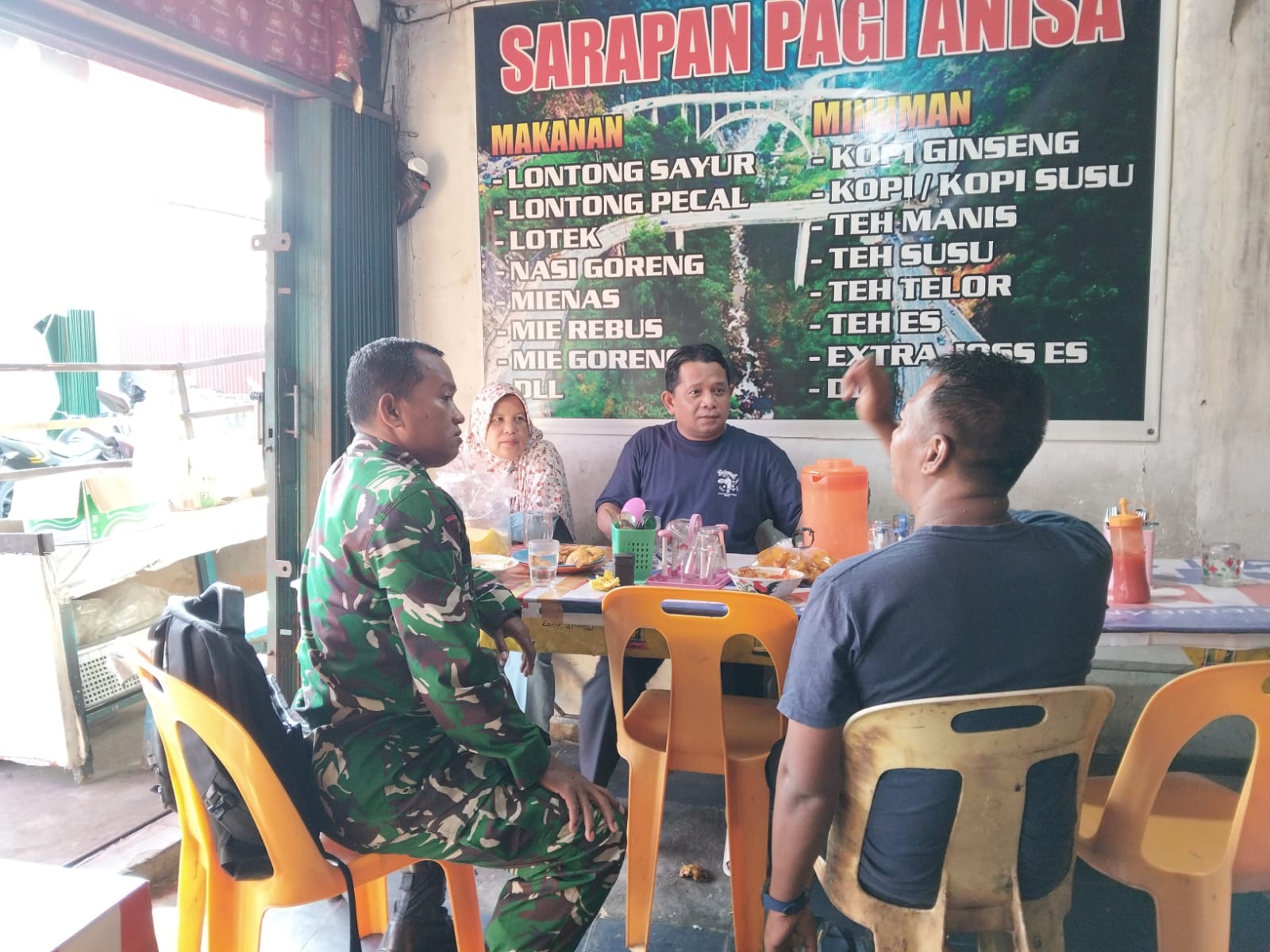 Sarapan Pagi Bersama Warga, Babinsa Muara Fajar Barat Bangun Kedekatan Lewat Obrolan.