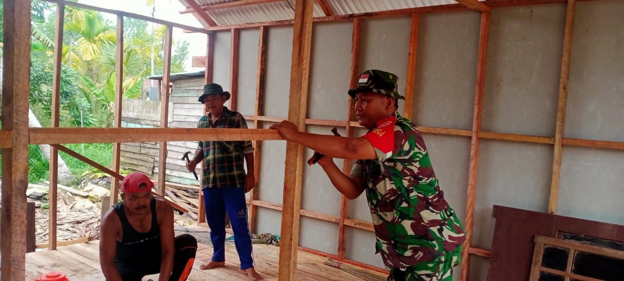 Peduli Warga Binaan, Babinsa Serda Sukiran Bantu Dirikan Rumah Solikin di Tuah.