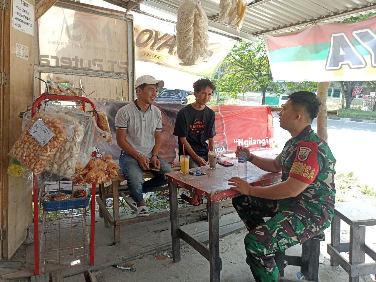 Babinsa Sertu Sutan Siregar Komsos dengan Humanis di Warung.