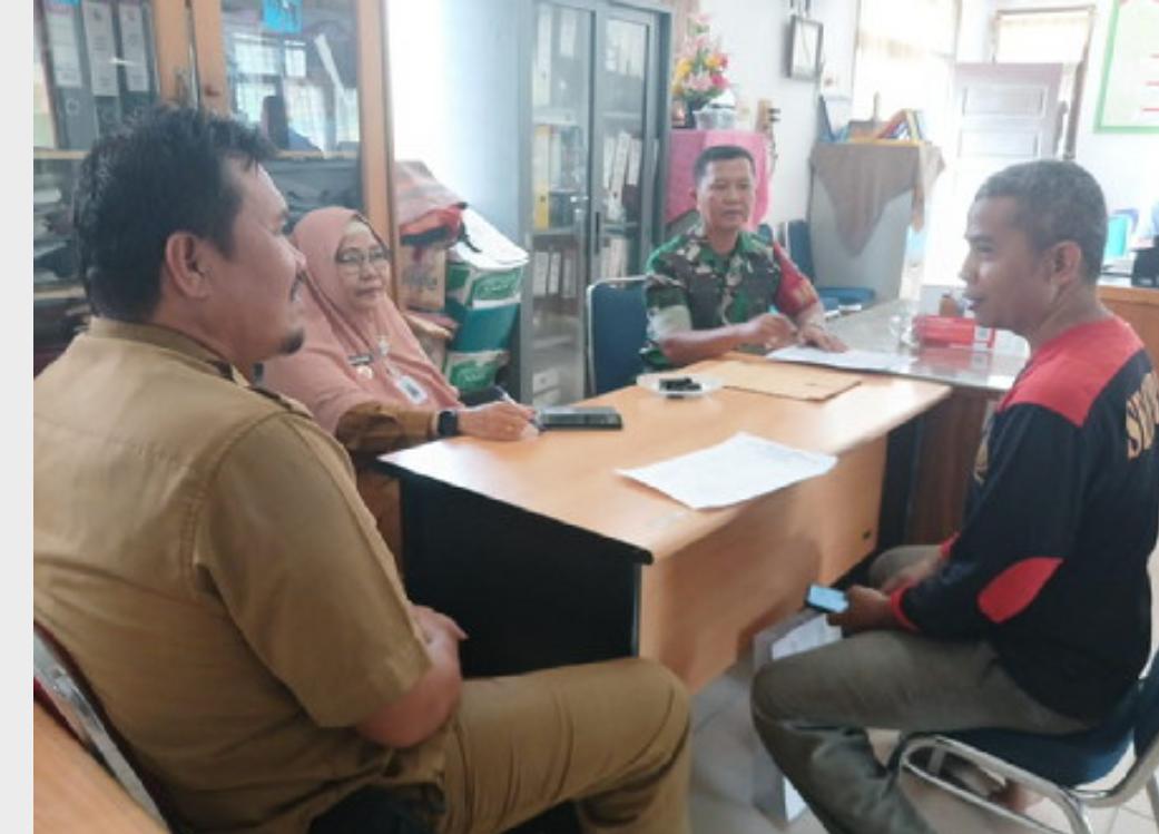 Babinsa Sertu Jhoni Janan Komsos dengan Staf Kelurahan Pulau Karomah Bahas.