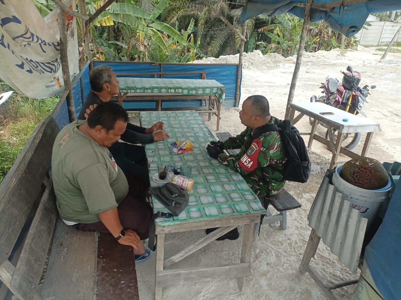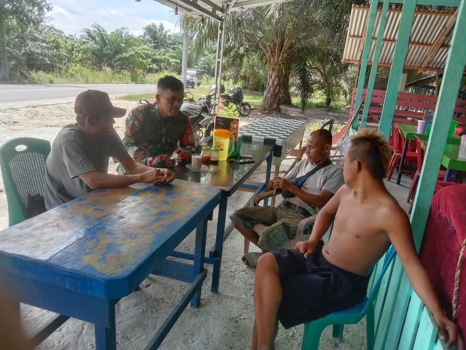 Di Warung Sederhana Dekat Kebun Sawit, Babinsa Serda Harfan Ajak Warga Jaga Lingkungan dan Jauhi.
