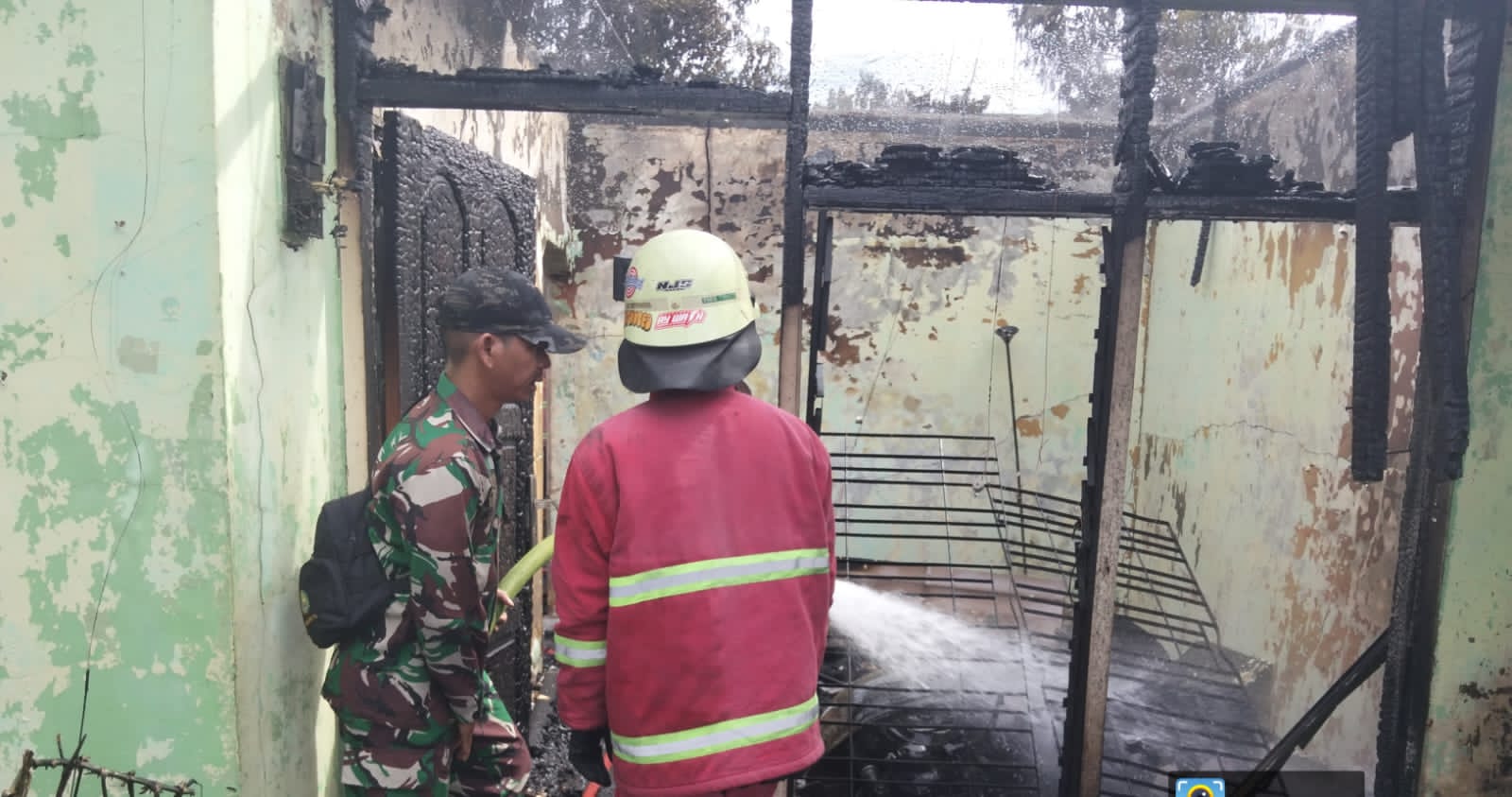 Dua Kontrakan Hangus Terbakar di Gang Terubuk 1, Babinsa Tangkerang Barat dan Warga Bantu Damkar Padamkan.