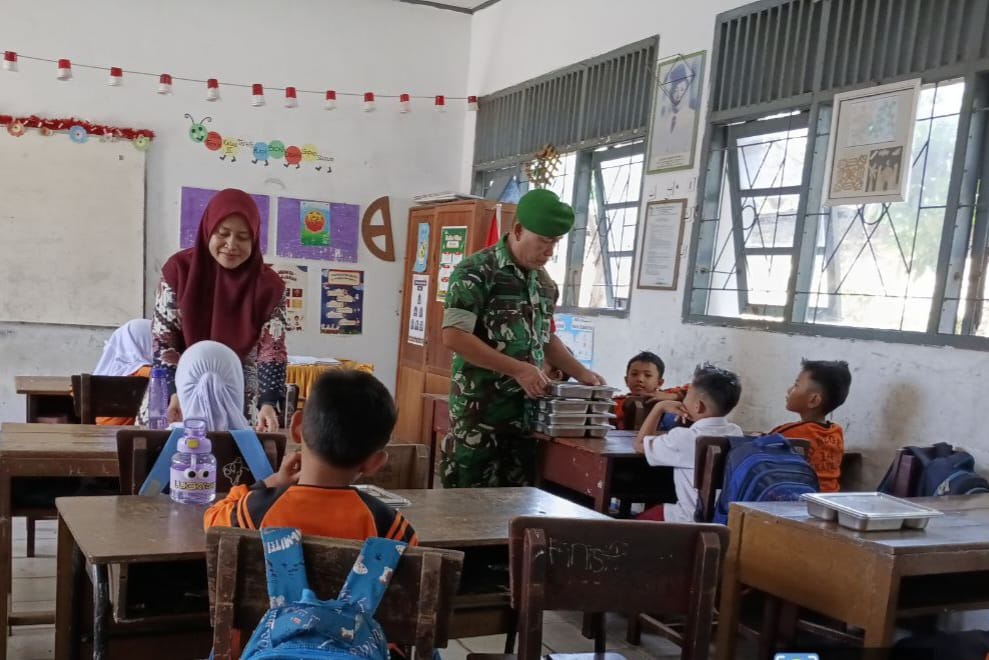 Babinsa Sertu Jhoni Janan Dampingi Penyaluran 1.322 Porsi Makanan Bergizi untuk Siswa di.