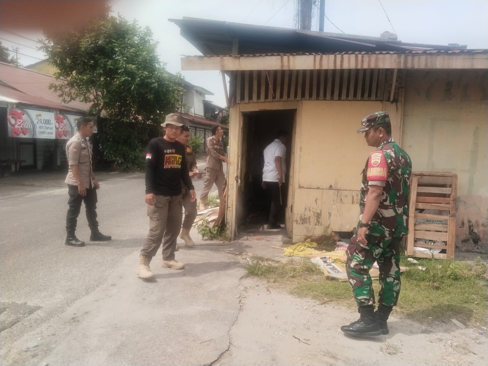 Babinsa Wonorejo Kawal Pembongkaran Bangunan Liar di TPU Jalan.