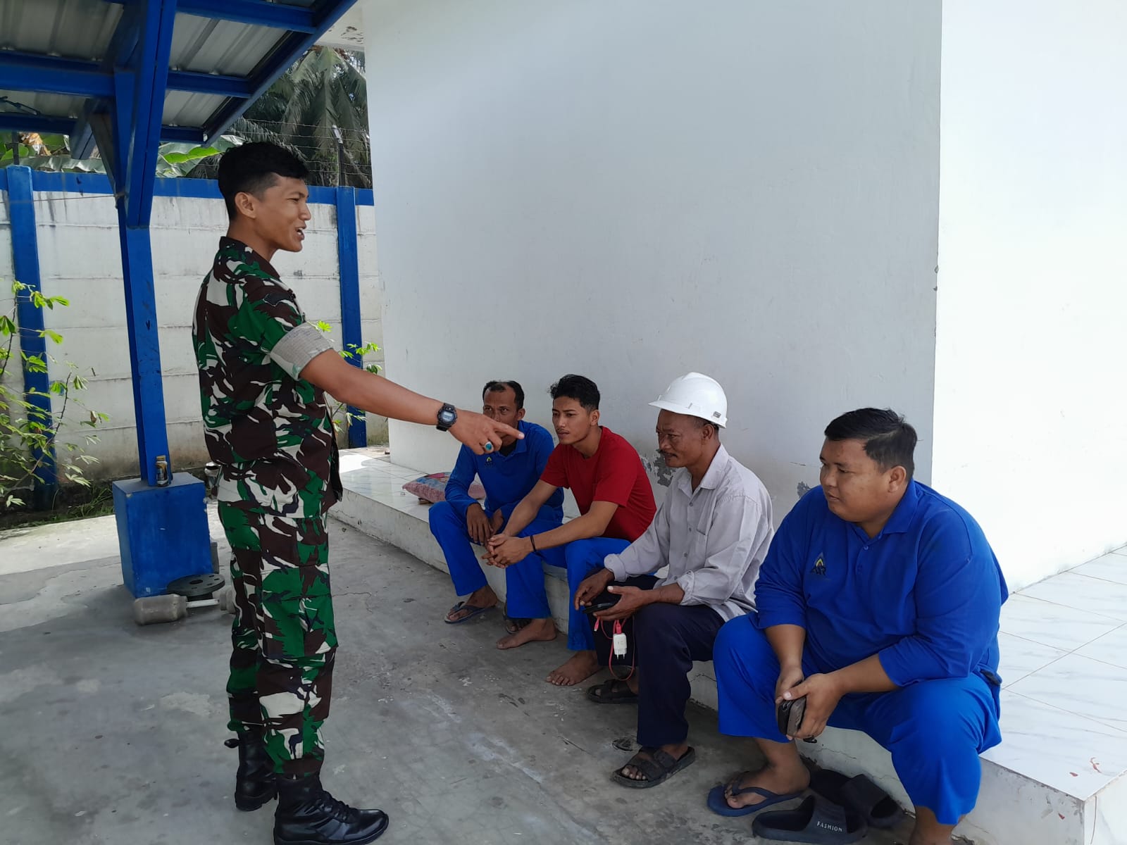 Babinsa Serda Widi Anugrah Imbau Keselamatan Kerja saat Komsos di Perusahaan Wilayah Muara Fajar.