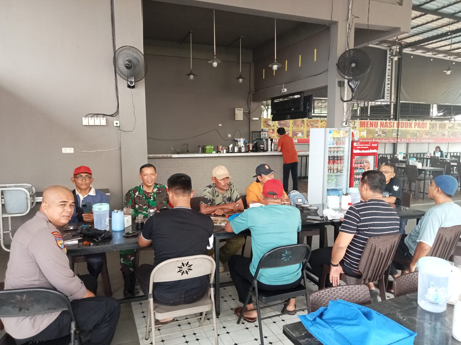 Suasana Santai Sambil Ngopi, Serda Bagiyo dan LPS Sidomulyo Timur Gelar Evaluasi.