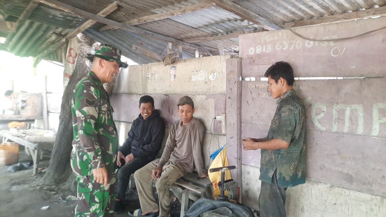 Tanpa Sekat dan Jarak, Babinsa Serka Toni Efendi Ngobrol Bareng Tukang Tempel Ban dan.