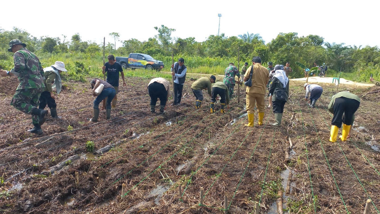 Babinsa Sertu Parjo dan Poktan Beringin Jaya Tanam Padi Gogo demi Swasembada.