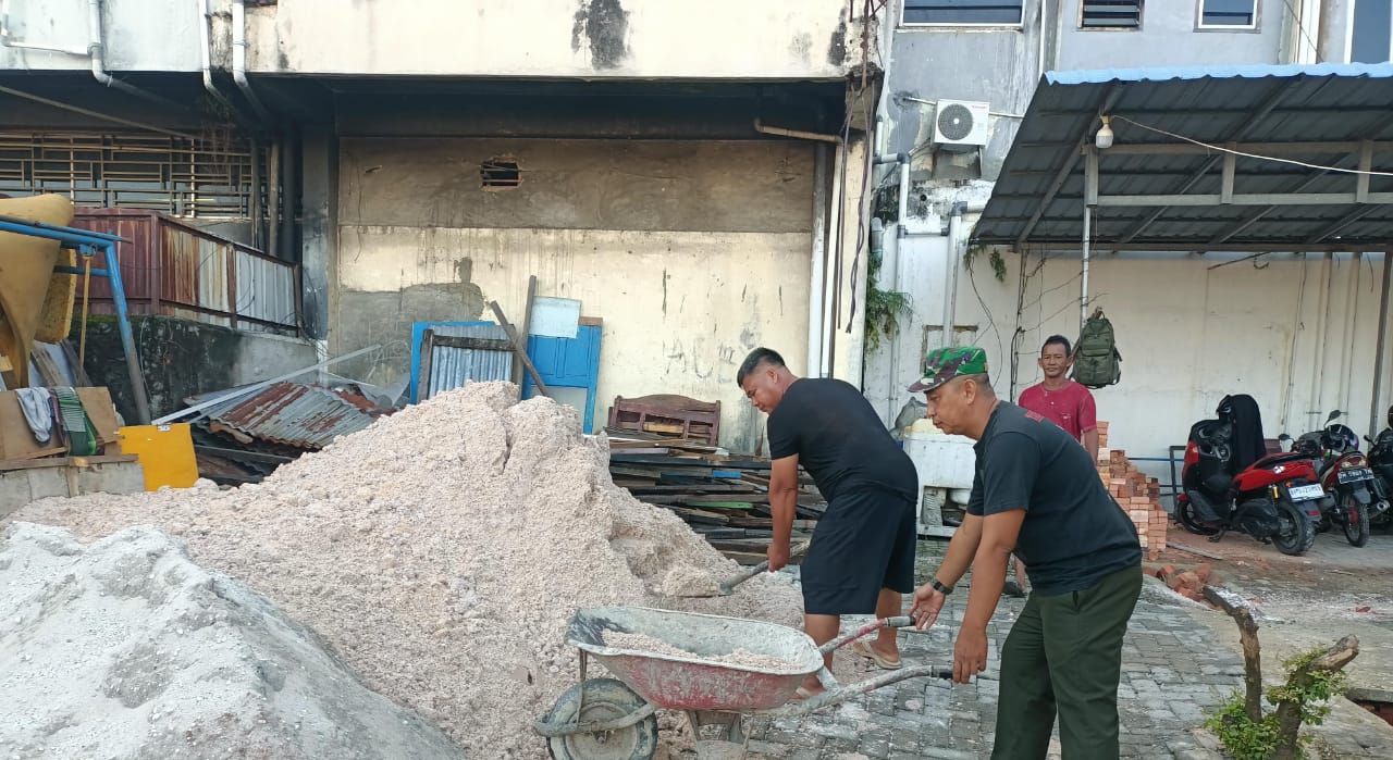 Tengah Terik, Semangat Babinsa Sertu Edy dan Warga Tak Surut Renovasi Panti Asuhan Bakti.