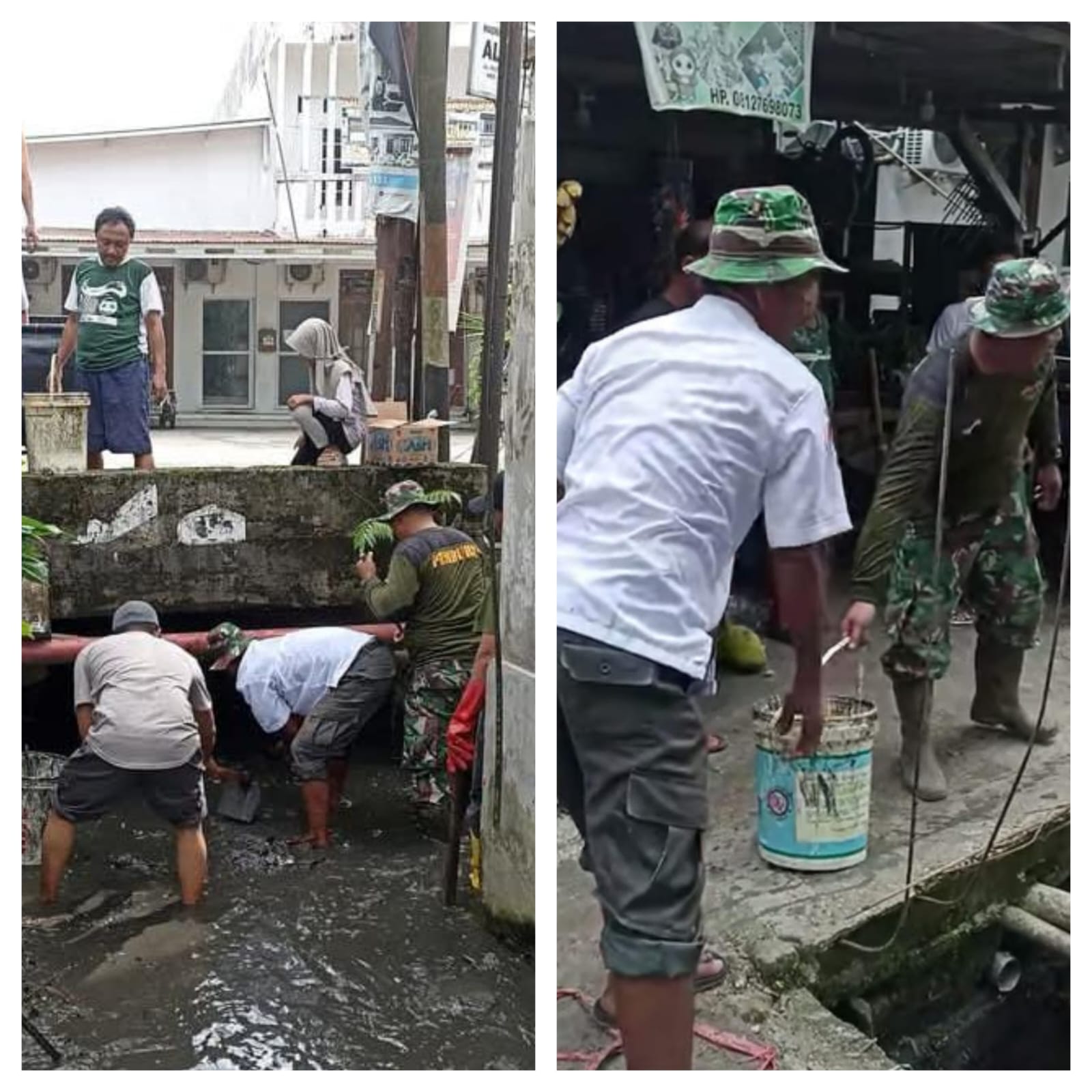 Turun ke Gorong-Gorong, Babinsa Serda M. Fauzi dan Warga Gotong Royong Bersihkan Lingkungan di Simpang.