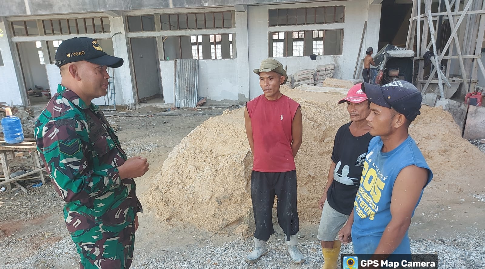 Tunjukkan Kepedulian, Serka Wiyono Sambangi Tukang Bangunan Berikan Imbauan Keselamatan.