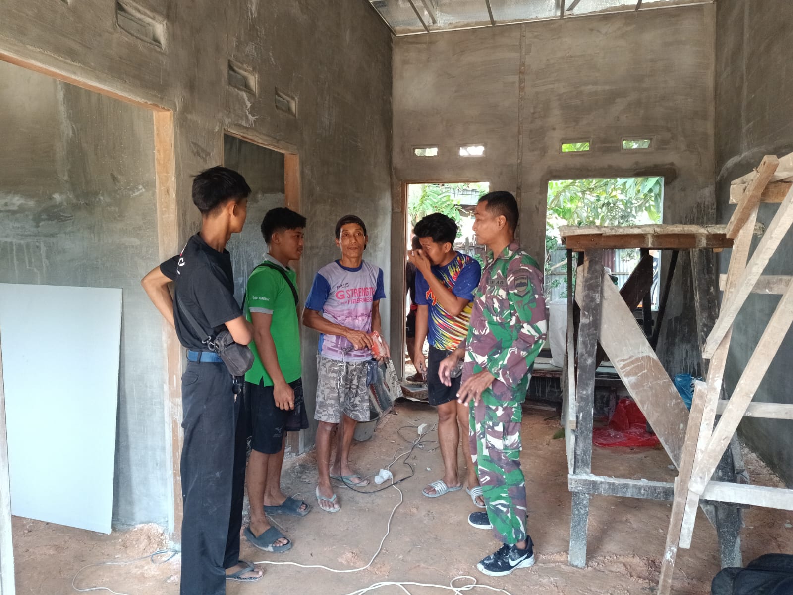 Dekat dengan Rakyat, Babinsa Serda Bagus Wirandono Komsos Bersama Tukang Bangunan Disela.
