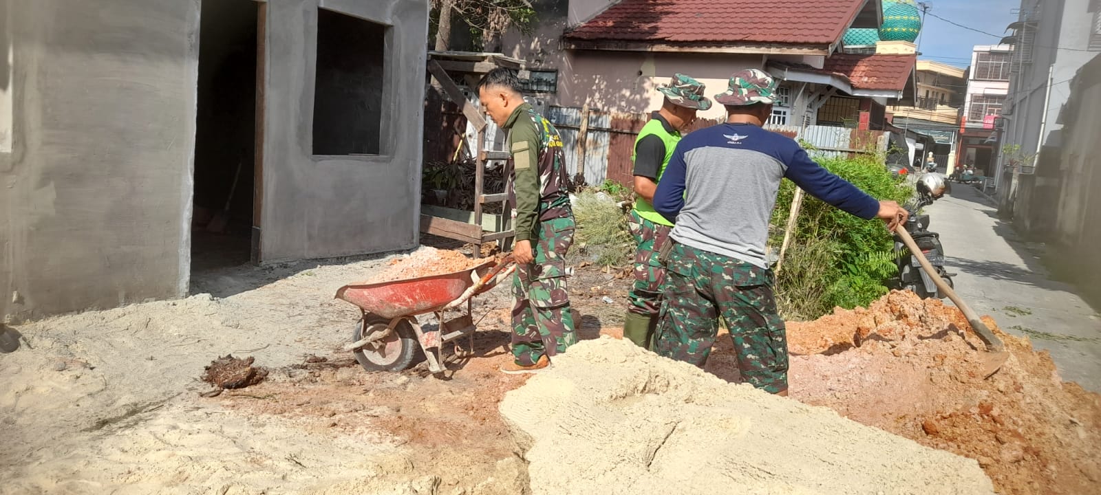 Babinsa Serda Harfan Turun Tangan Bantu Rehab Rumah Nenek Kinasih di Bawah Terik.
