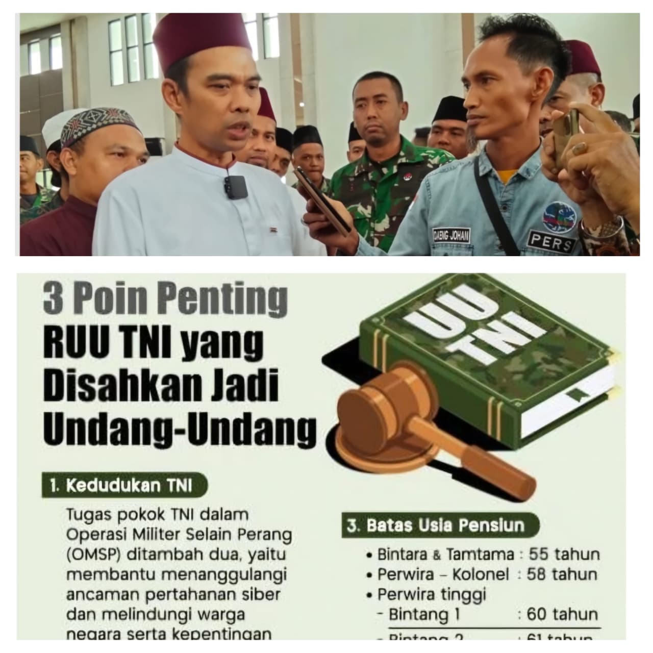 Ustadz Abdul Somad Tanggapi Pengesahan UU TNI, Ini Negara Demokrasi, Hormati Keputusan.