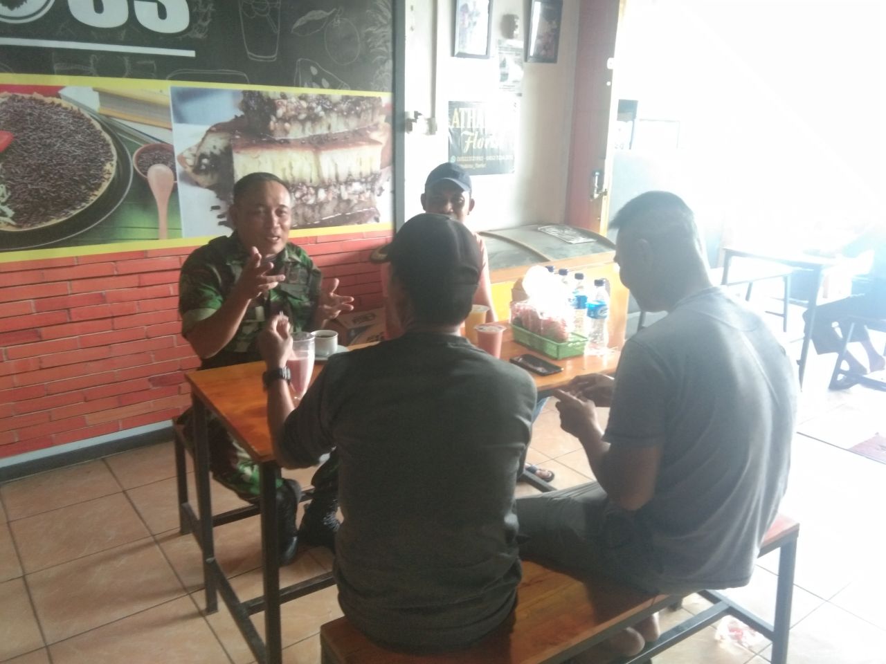 Babinsa Serma J Tanjung Hadiri Ngopi Bareng Bersama Pemuka Masyarakat Kelurahan Sidomulyo.